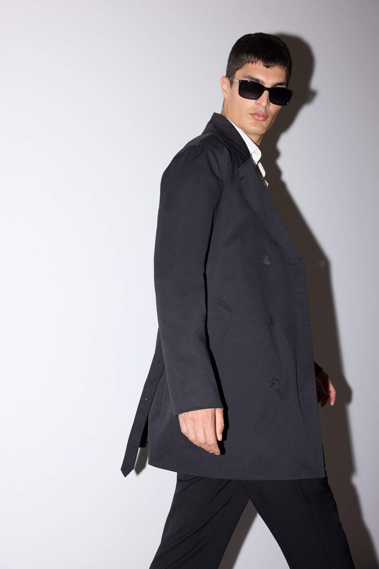 Slim Fit Dar Kesim Kemerli Düğmeli Trençkot D5528AX25AUBK27
