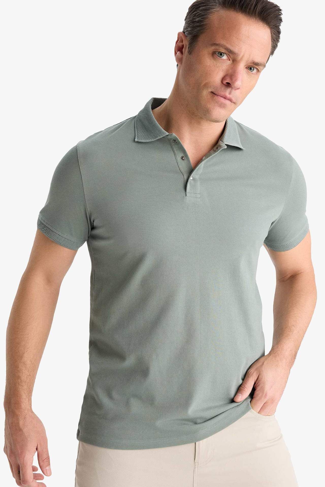 DeFacto Slim Fit Dar Kesim Kısa Kollu Basic Düz Polo Tişört T5259AZ25SMGN1153