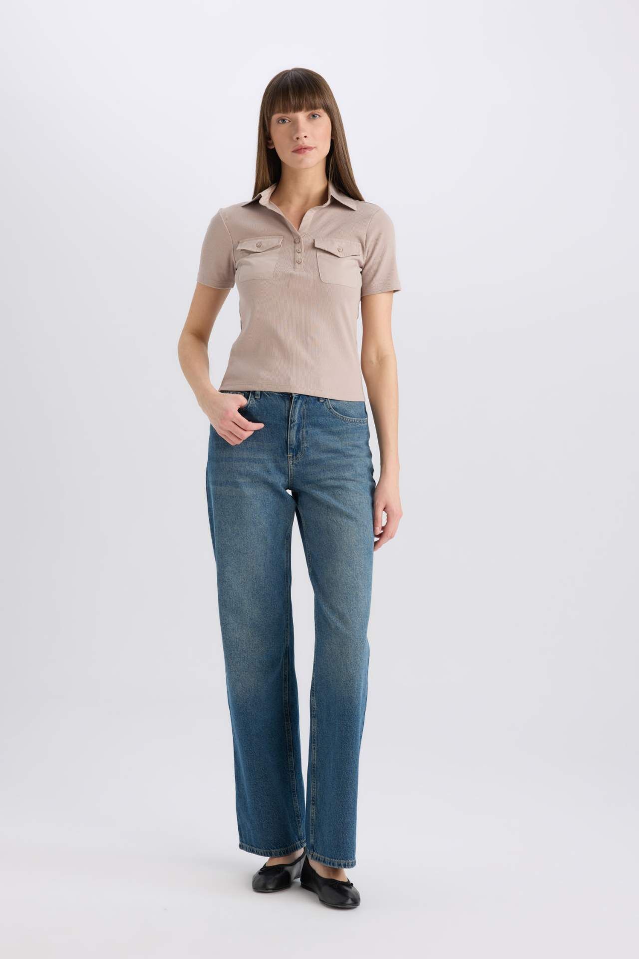 DeFacto Slim Fit Dar Kesim Polo Yaka Casual Fitilli Kaşkorse Kısa Kollu Polo Tişört