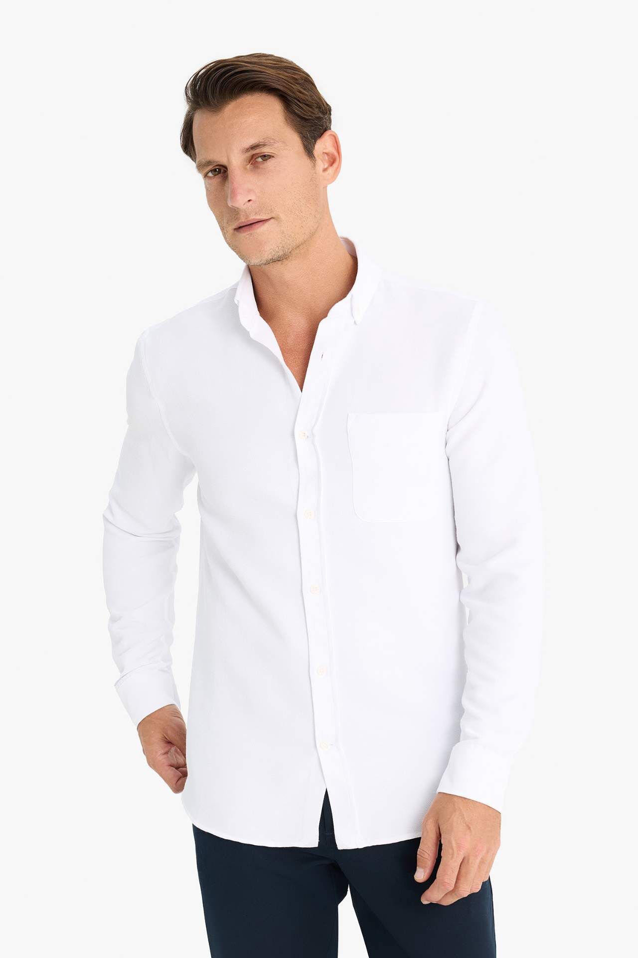 DeFacto Slim Fit Dar Kesim Polo Yaka Dokulu Uzun Kollu Gömlek T2066AZ25SPWT34