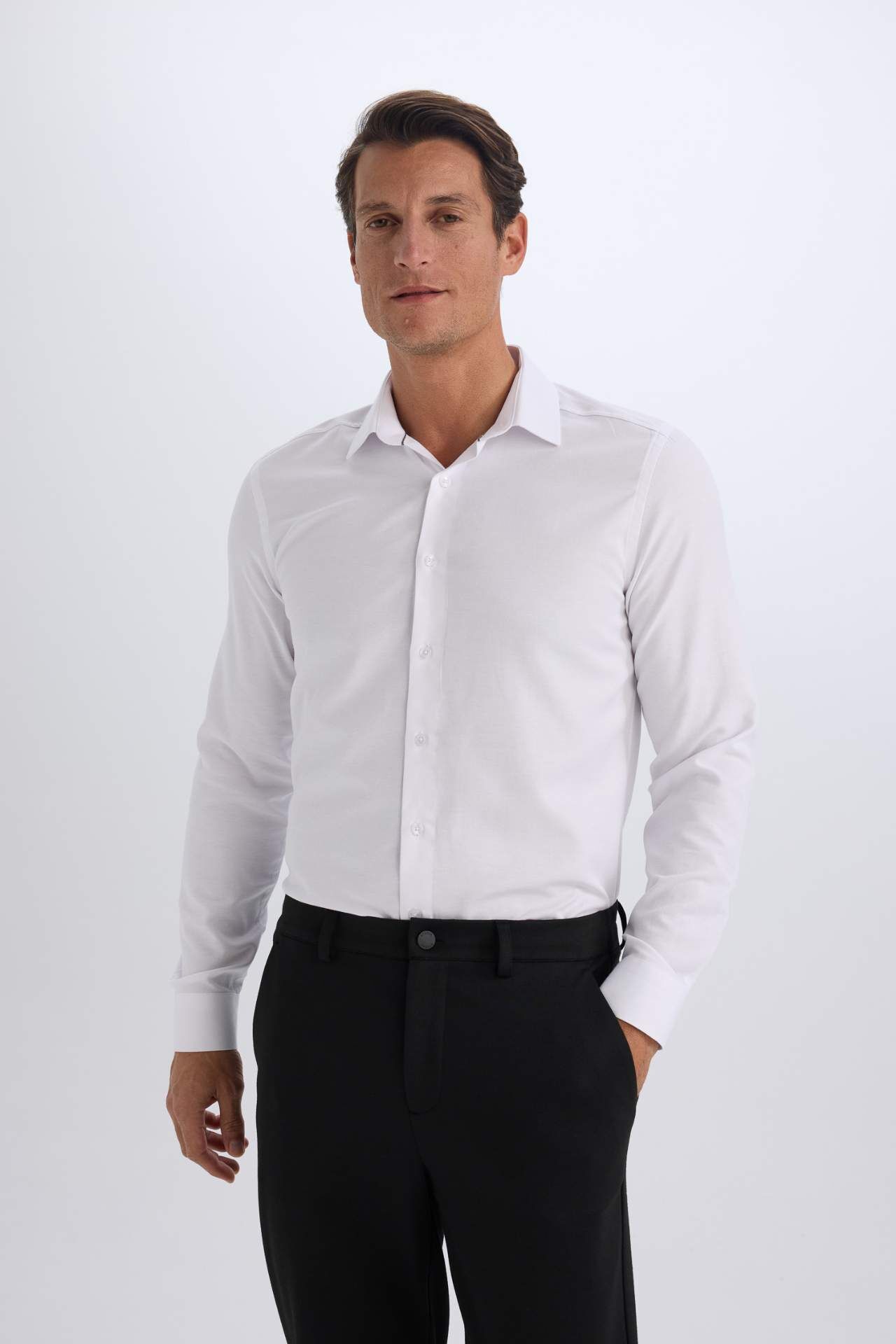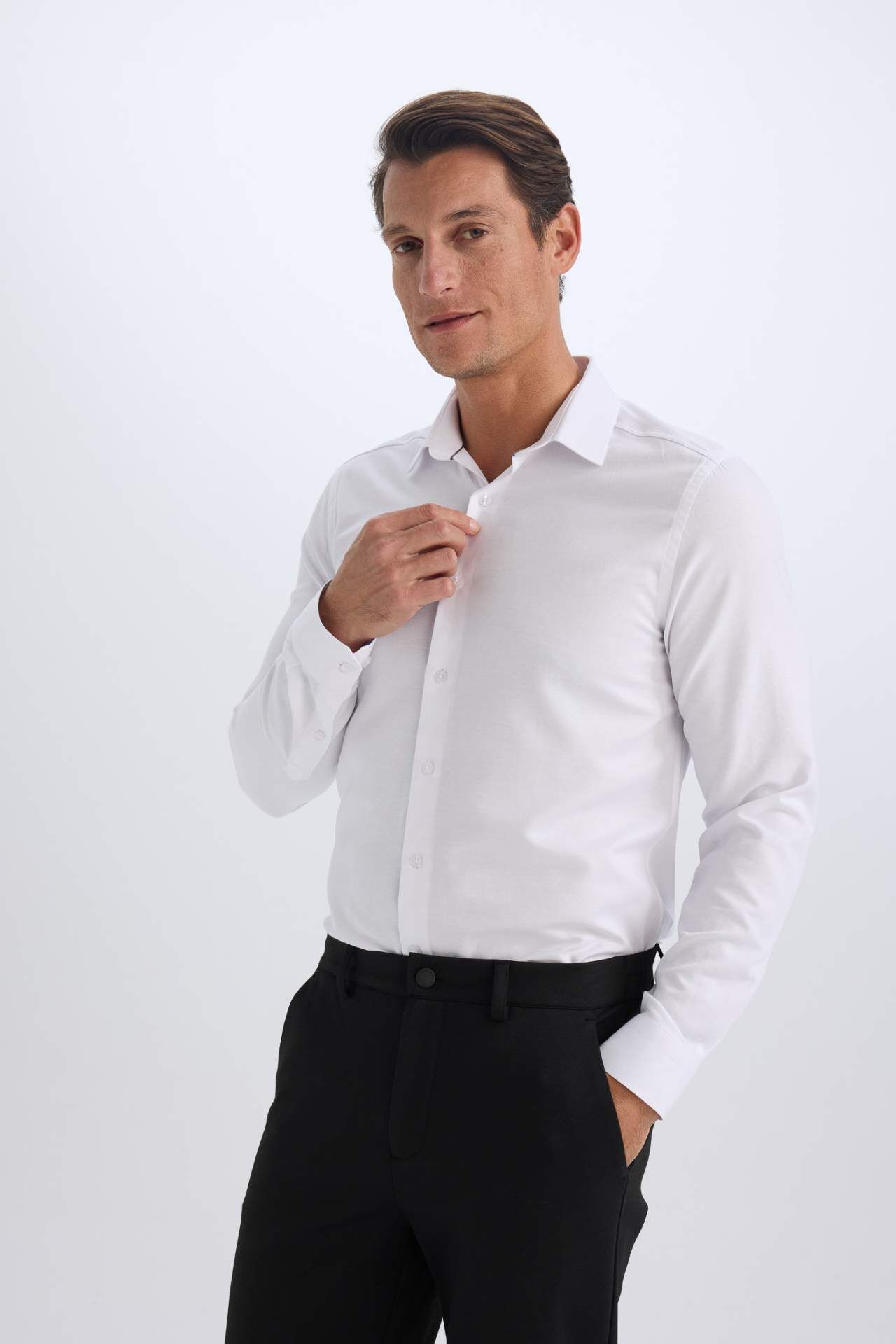 DeFacto Slim Fit Dar Kesim Polo Yaka Oxford Basic Düz Uzun Kollu Gömlek R4340AZ25SPWT36