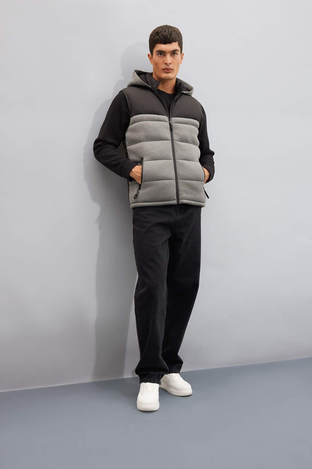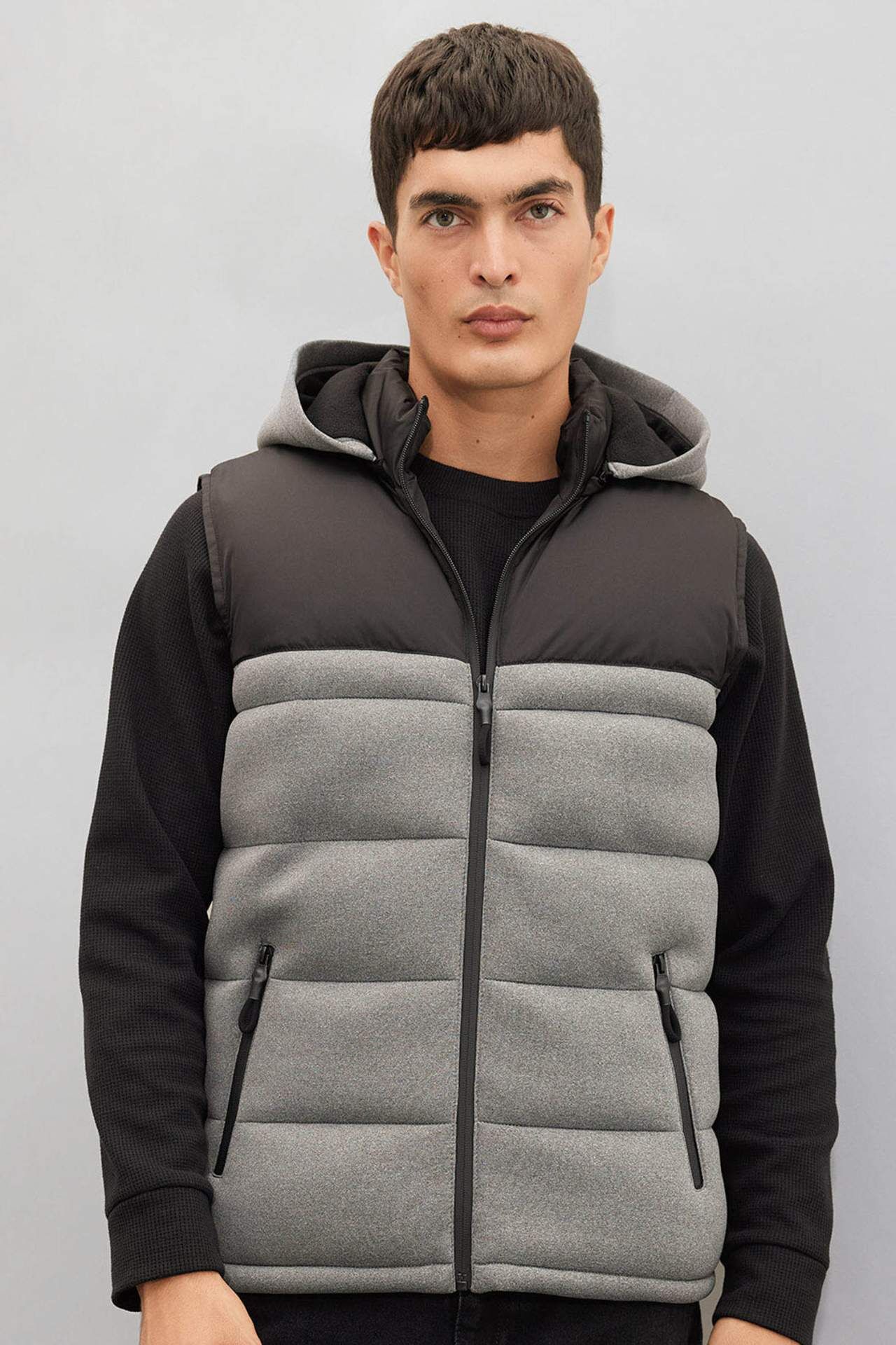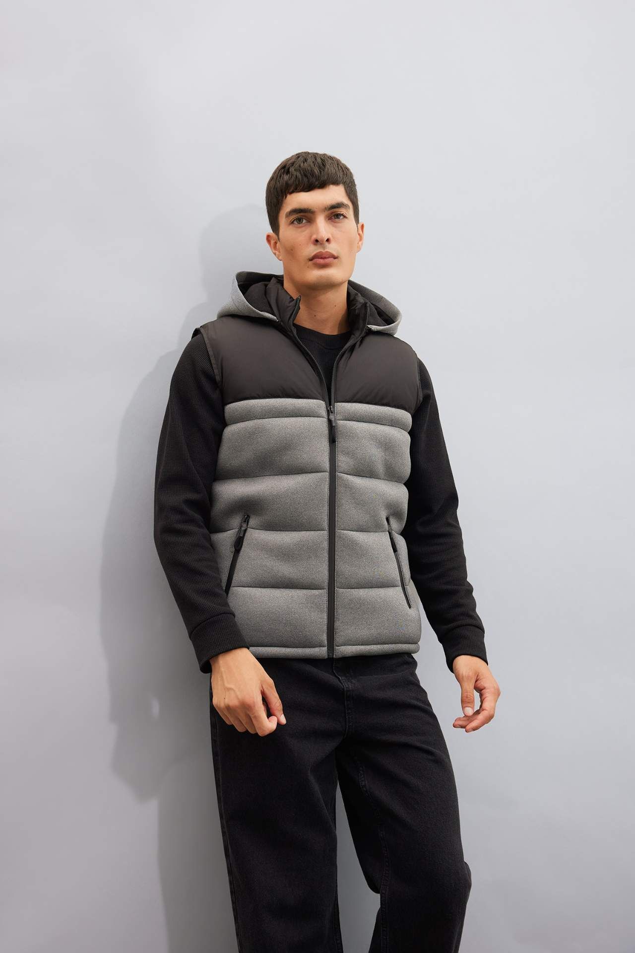 DeFacto Slim Fit Dar Kesim Renk Bloklu Kapüşonlu Fermuarlı Cepli Yelek