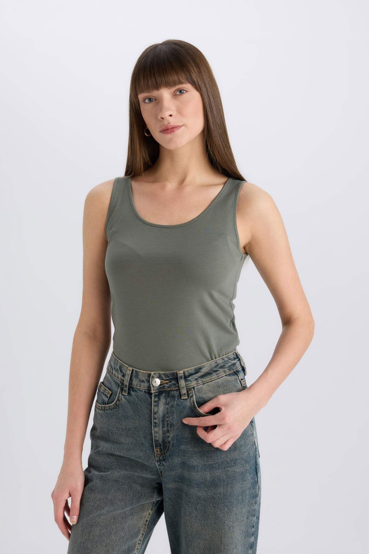 DeFacto Slim Fit Dar Kesim U Yaka Basic Düz Atlet