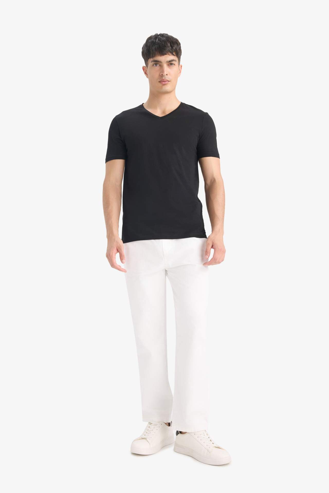 DeFacto Slim Fit Dar Kesim V Yaka Basic Düz Kısa Kollu Tişört M7668AZ25SPBK81