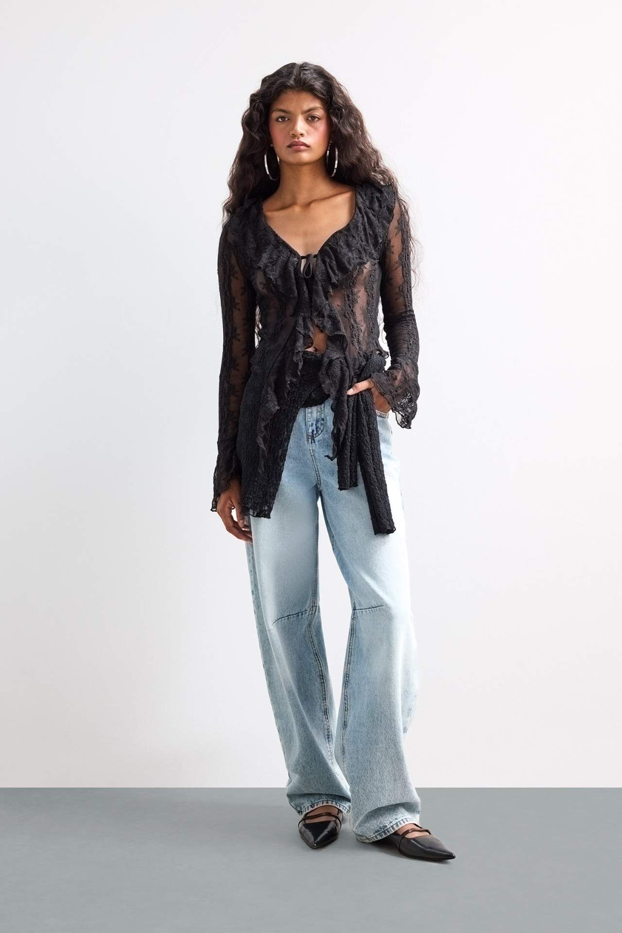 Slim Fit Dar Kesim V Yaka Dantel Önden Bağlamalı Uzun Kollu Bluz, vücuda oturan yapısı ve romantik dantel dokusuyla feminen bir stil sunar. V yaka ve önden bağlamalı tasarımıyla zarif ve dikkat çekici bir görünüm sağlar. Özel günlerden günlük şıklığa kadar her ortamda tercih edilebilir. Elastan 1%,Poliester 99%,Elastan 1%,Poliester 99%,Elastan 1%,Poliester 99%,Elastan 1%,Poliester 99%,Elastan 1%,Poliester 99%,Elastan 1%,Poliester 99%