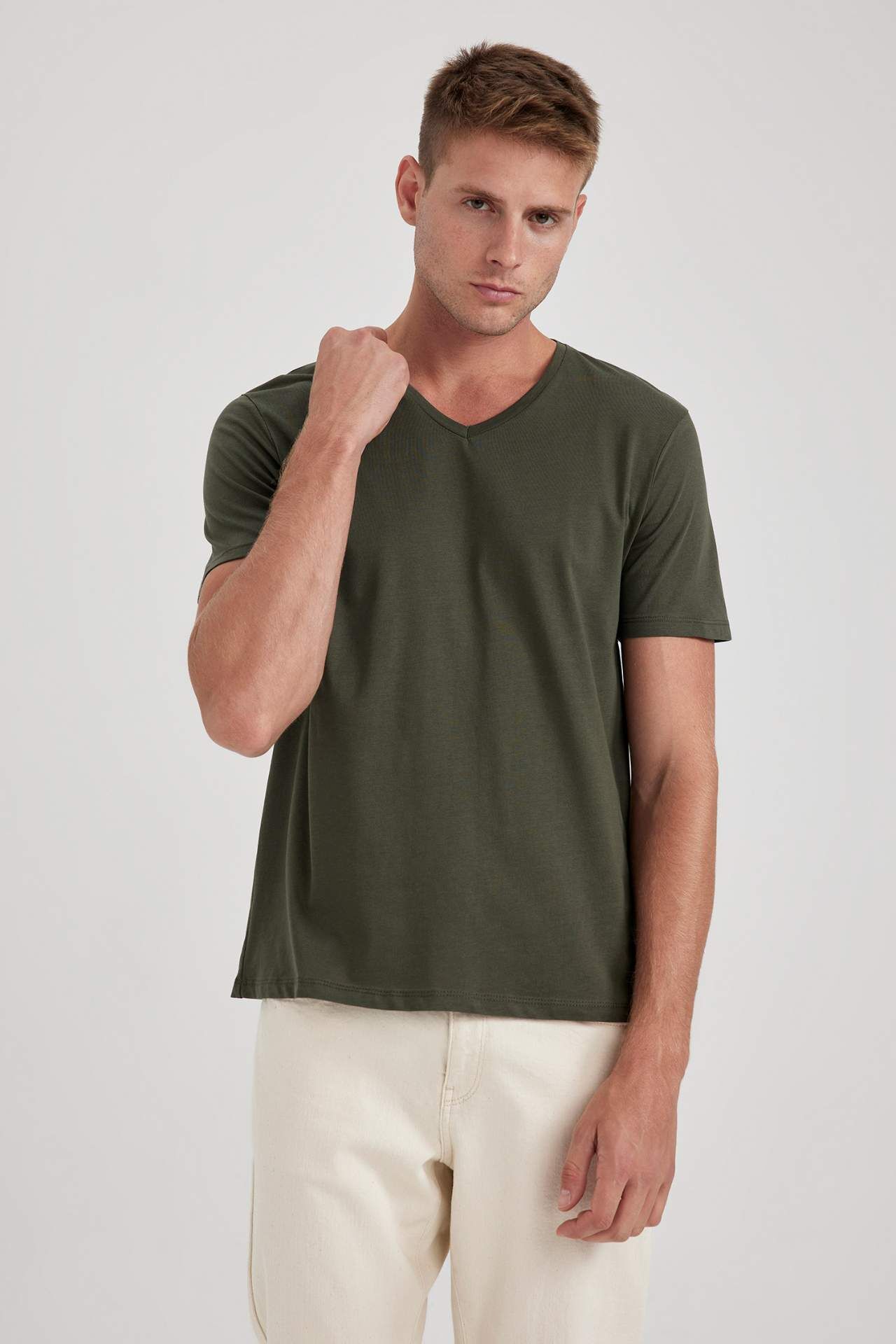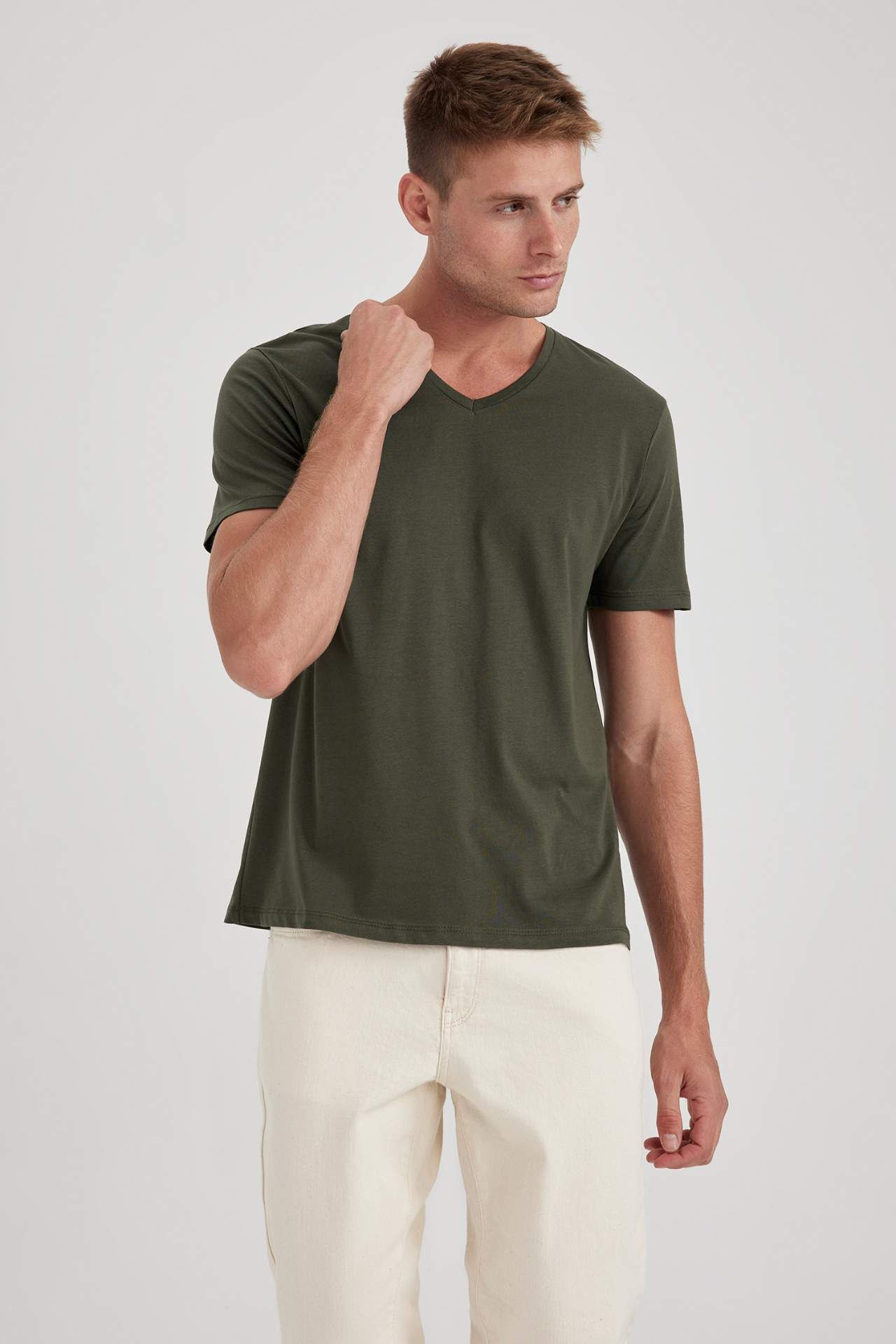 DeFacto Slim Fit Dar Kesim V Yaka Pamuklu Tişört B0646AXNSKH465