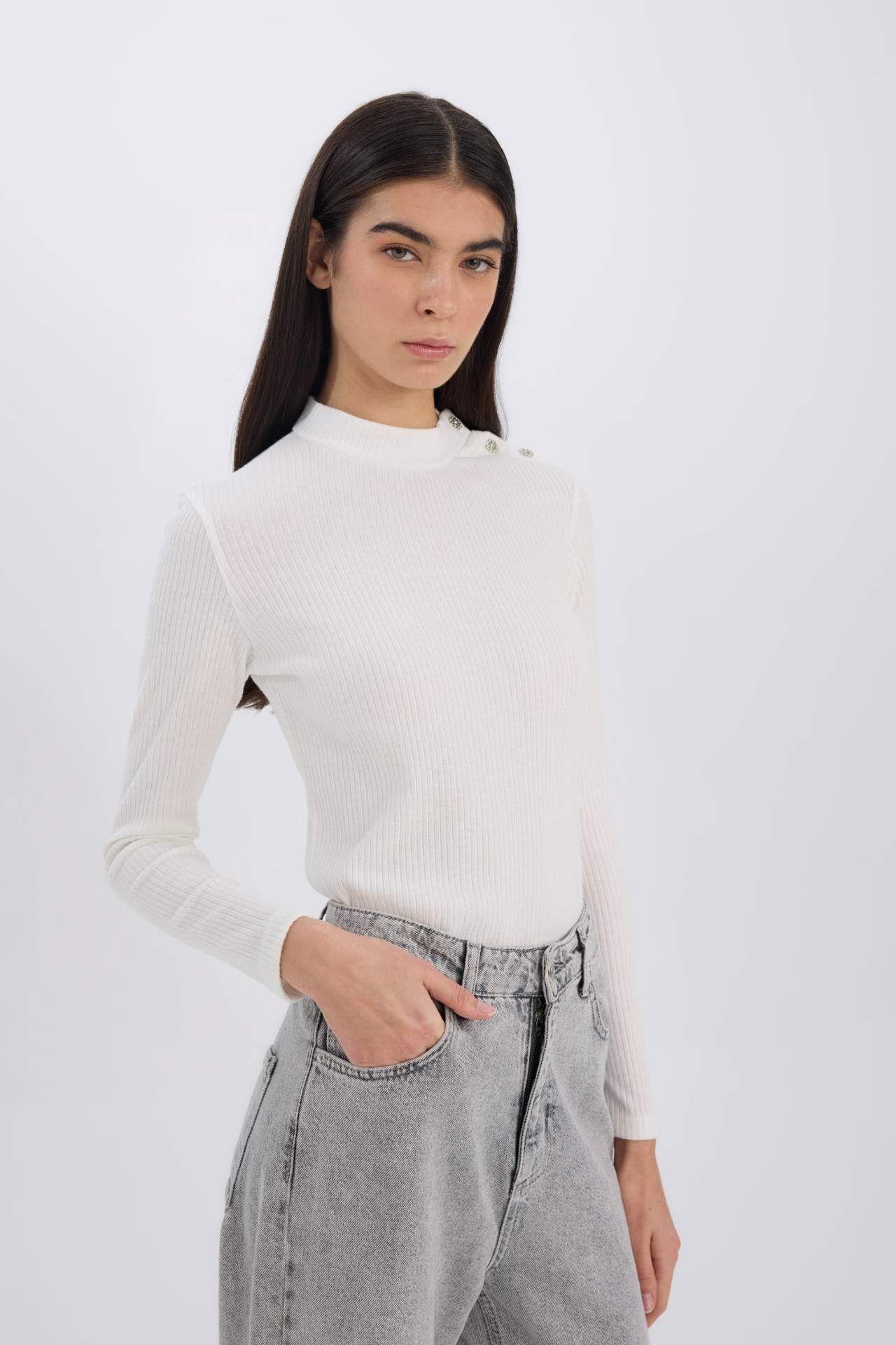 DeFacto Slim Fit Dar Kesim Yarım Balıkçı Yaka Casual Fitilli Kaşkorse Uzun Kollu Tişört