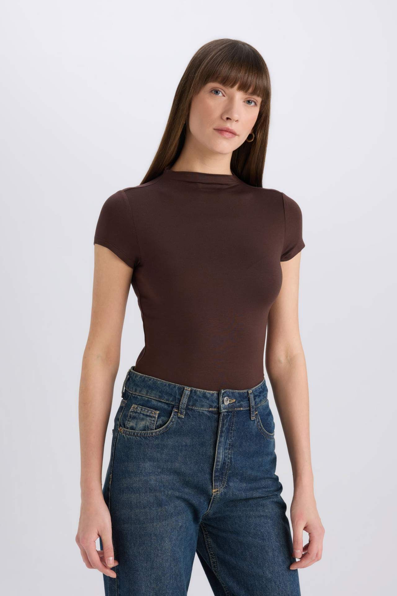 DeFacto Slim Fit Dar Kesim Yarım Balıkçı Yaka Kısa Kollu Tişört E5906AX25SPBN267