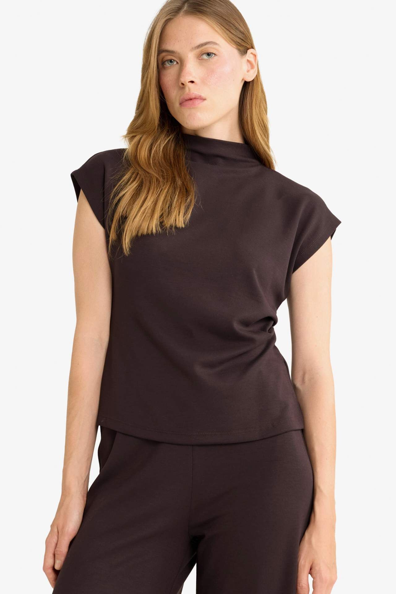 Slim Fit Dar Kesim Yarım Balıkçı Yaka Pike Kolsuz Bluz F7760AX25AUBN207