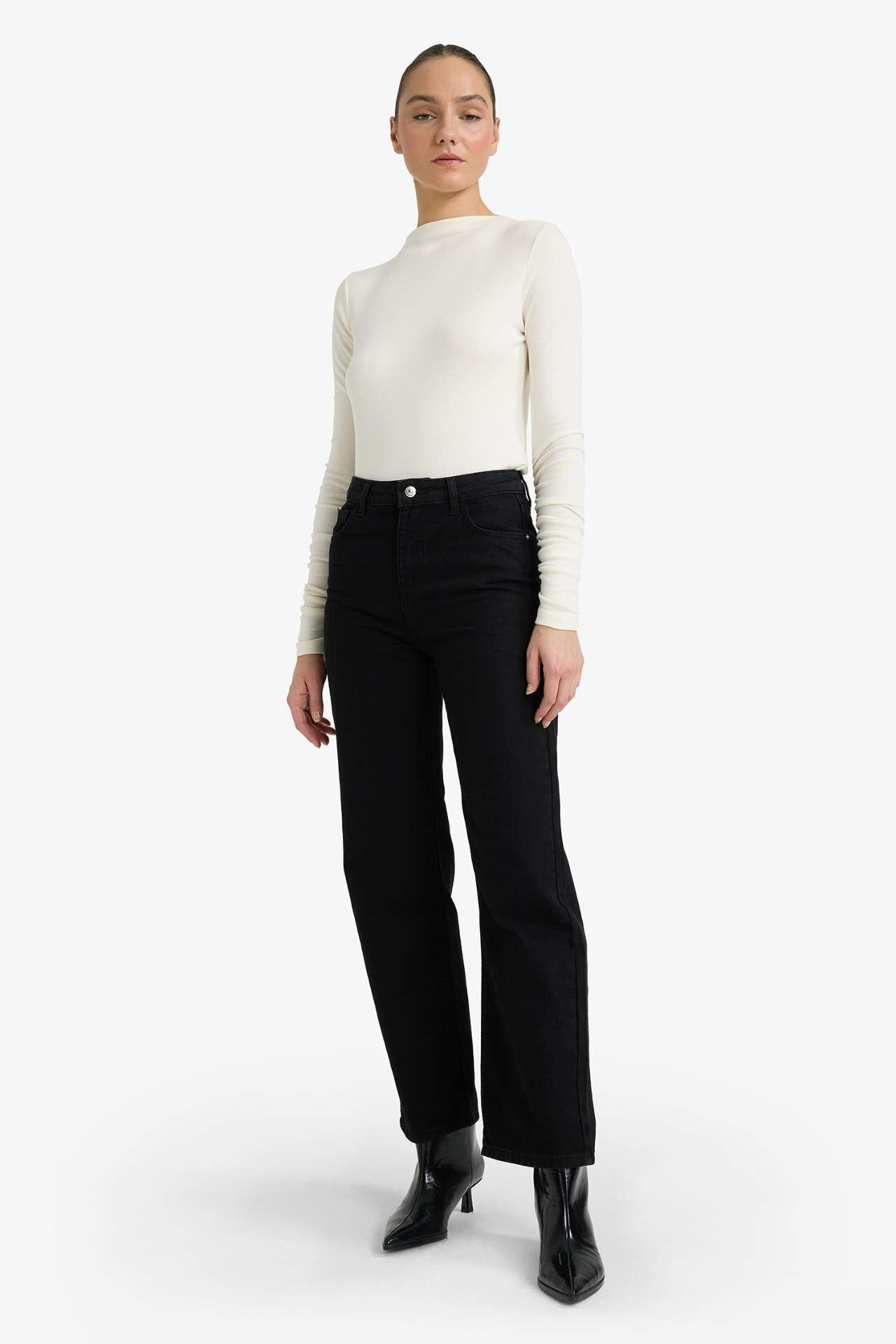 Slim Fit Dar Kesim Yarım Balıkçı Yaka Ribana Uzun Kollu Tişört