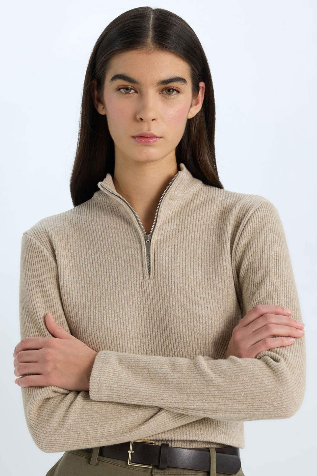 DeFacto Slim Fit Dar Kesim Yarım Balıkçı Yaka Smart Fitilli Kaşkorse Uzun Kollu Tişört