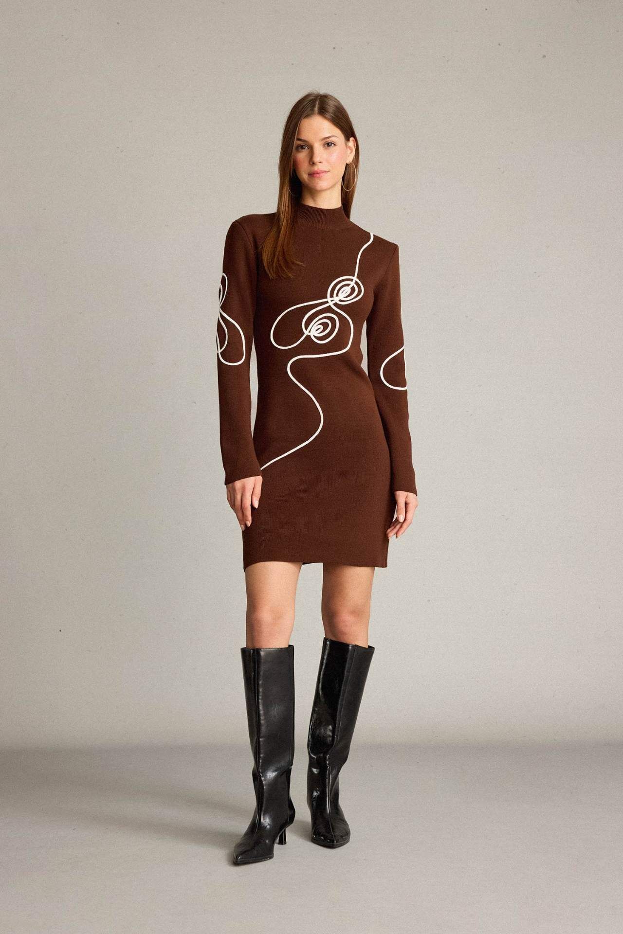 Slim Fit Dar Kesim Yarım Balıkçı Yaka Triko Uzun Kollu Elbise