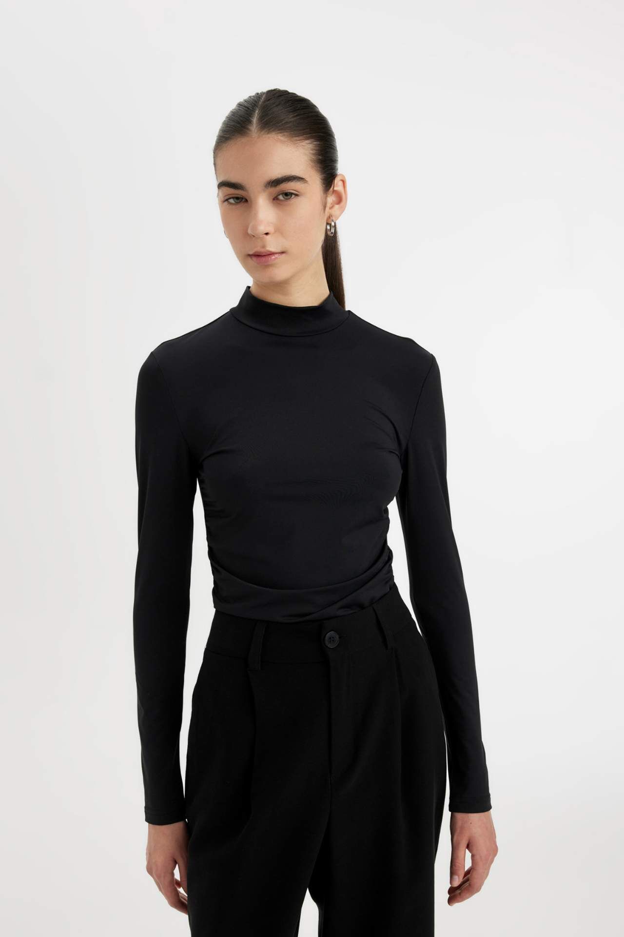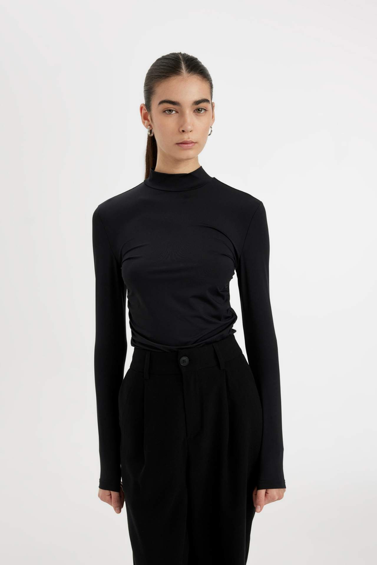 Slim Fit Dar Kesim Yarım Balıkçı Yaka Uzun Kollu Tişört