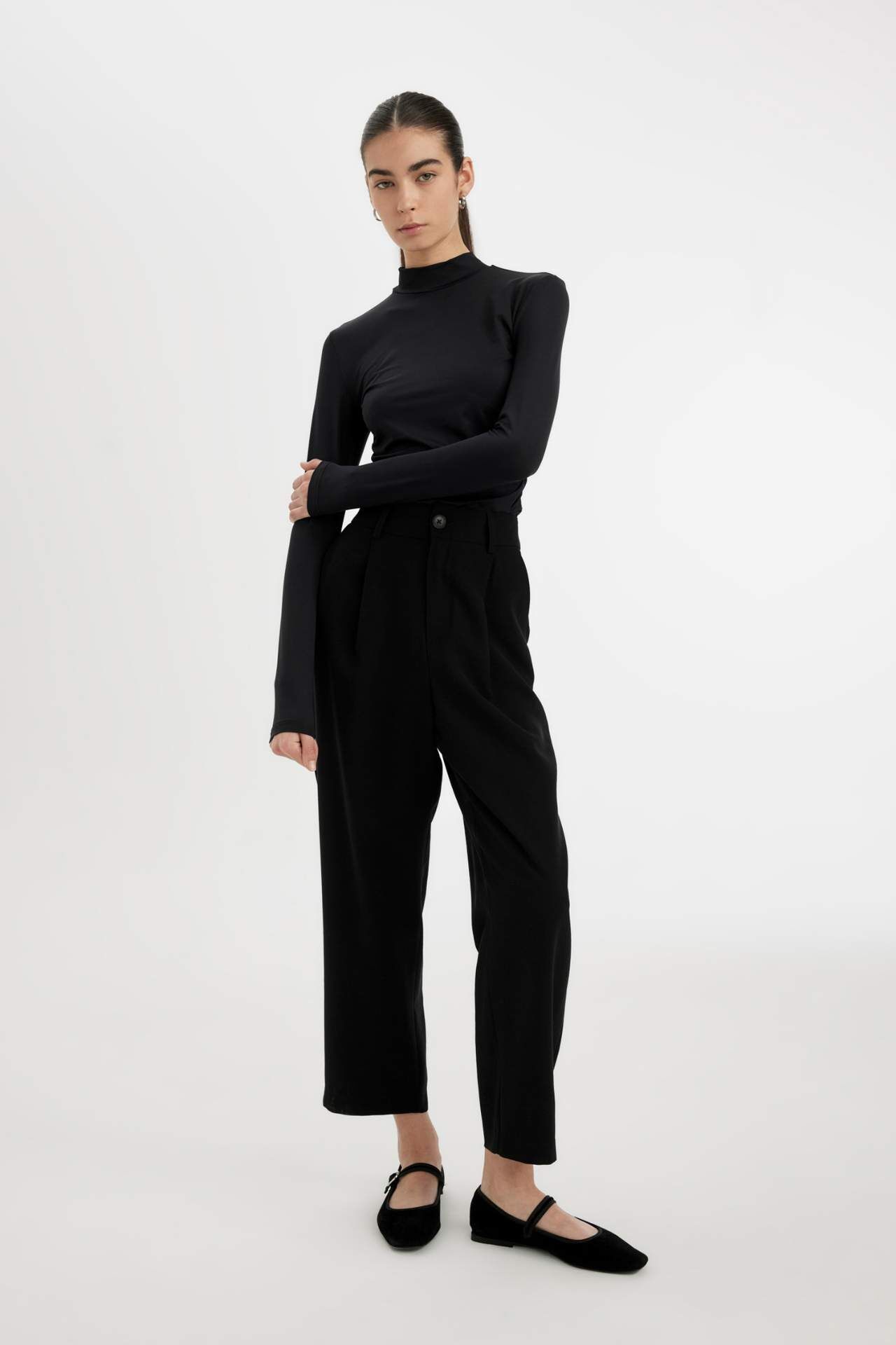 Slim fit dar kesimiyle vücuda oturan yarım balıkçı yaka uzun kollu tişört, modern ve şık bir görünüm sunar. Esnek ve yumuşak dokusu sayesinde gün boyu konfor sağlarken, tek başına ya da katmanlı kombinlerde rahatlıkla kullanılabilir. Poliamid 83%,Elastan 17% Manken Bedeni: Göğüs: 75 Boy: 1,74 Basen: 84 Bel: 56