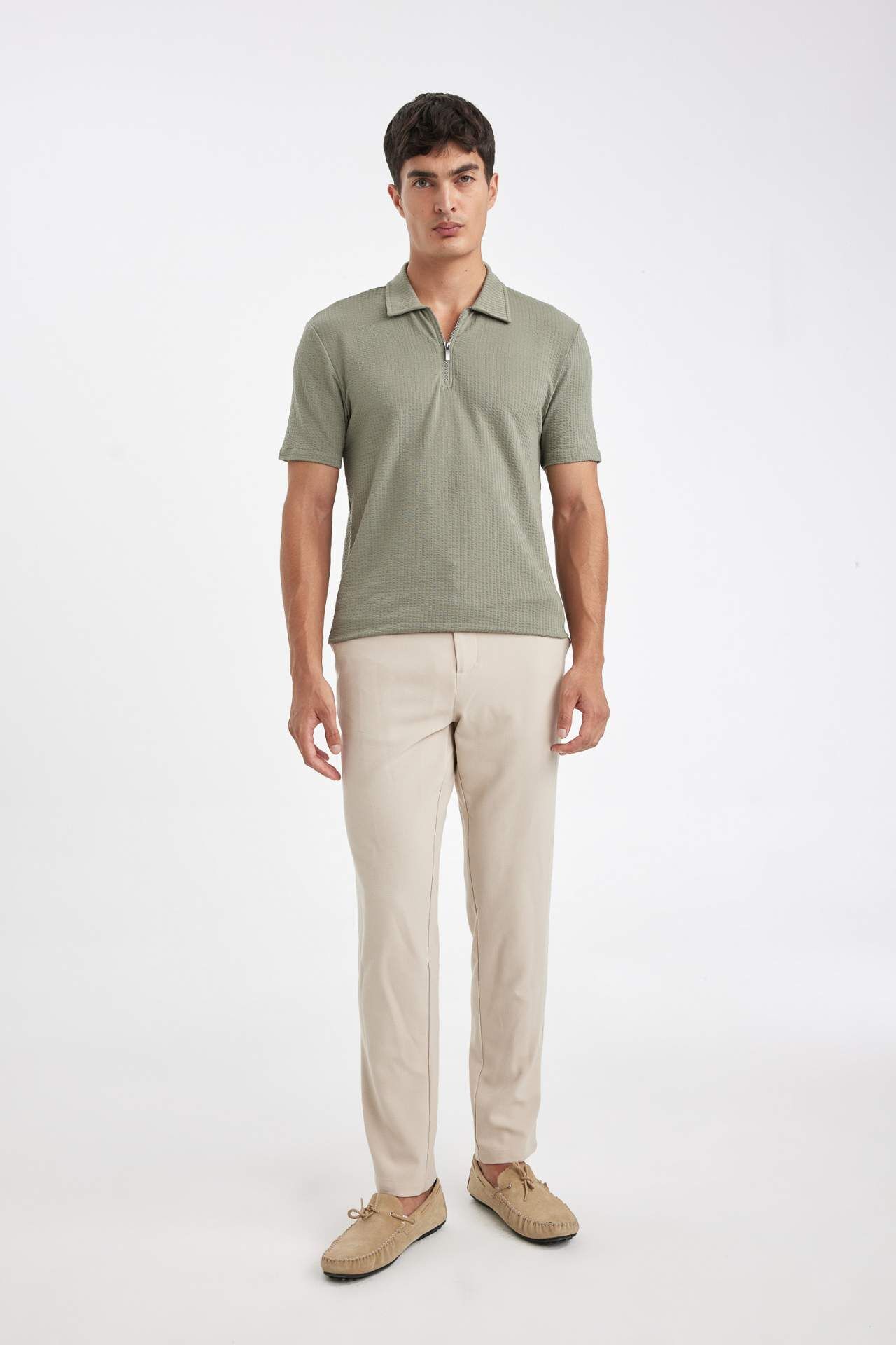 DeFacto Slim Fit Dar Kesim Yarım Fermuarlı Kısa Kollu Krinkıl Polo Tişört D6478AX24HSKH499
