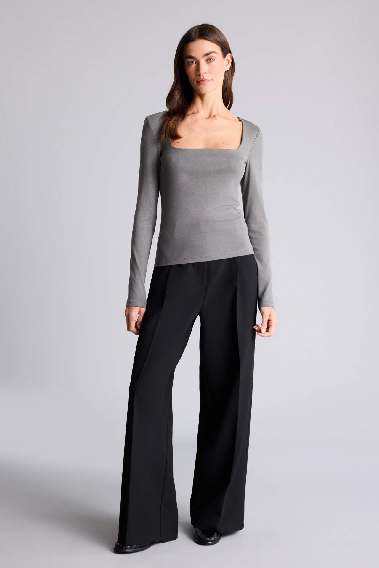 Slım Fıt Kare Yaka Basıc Düz Modal Uzun Kollu Tişört