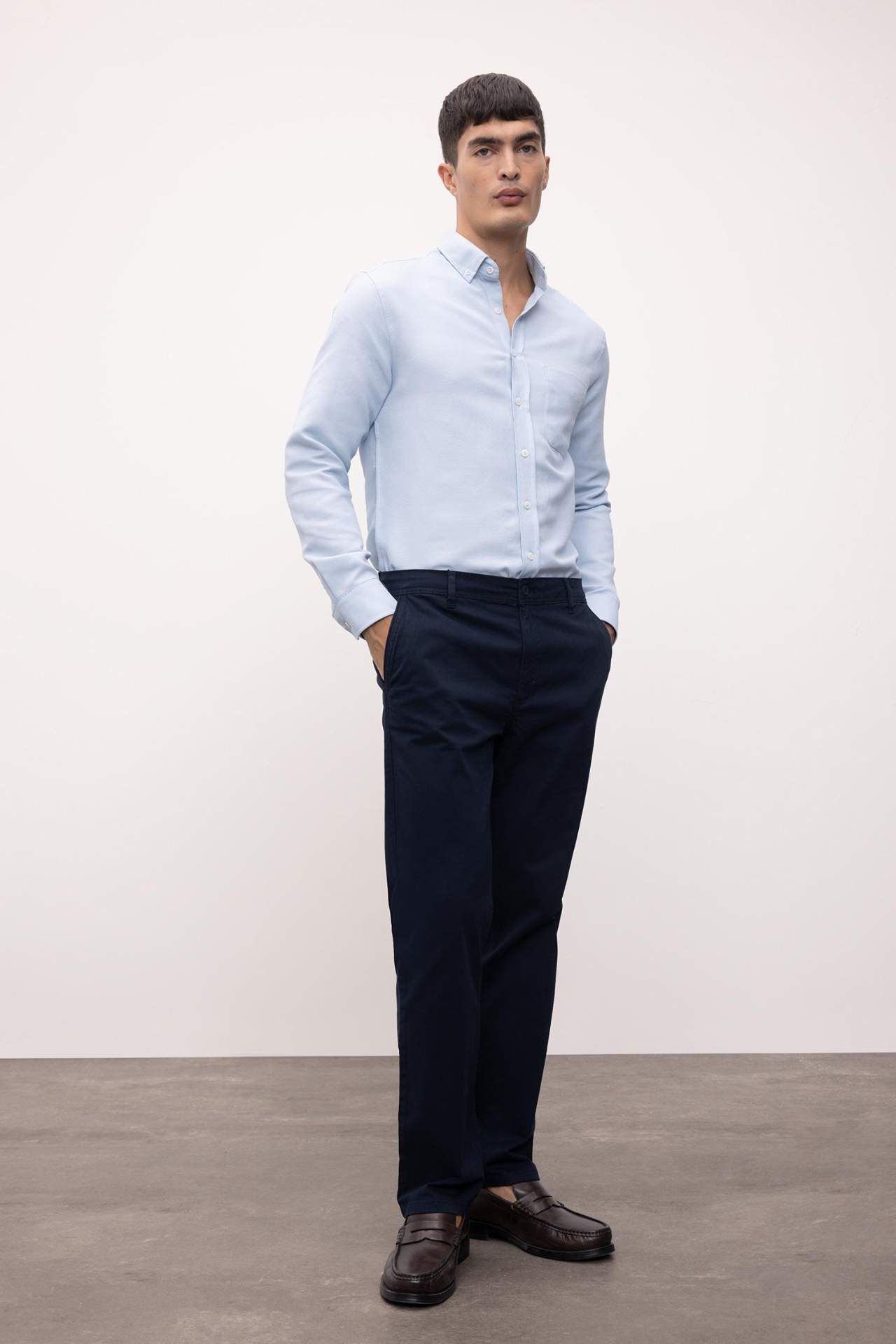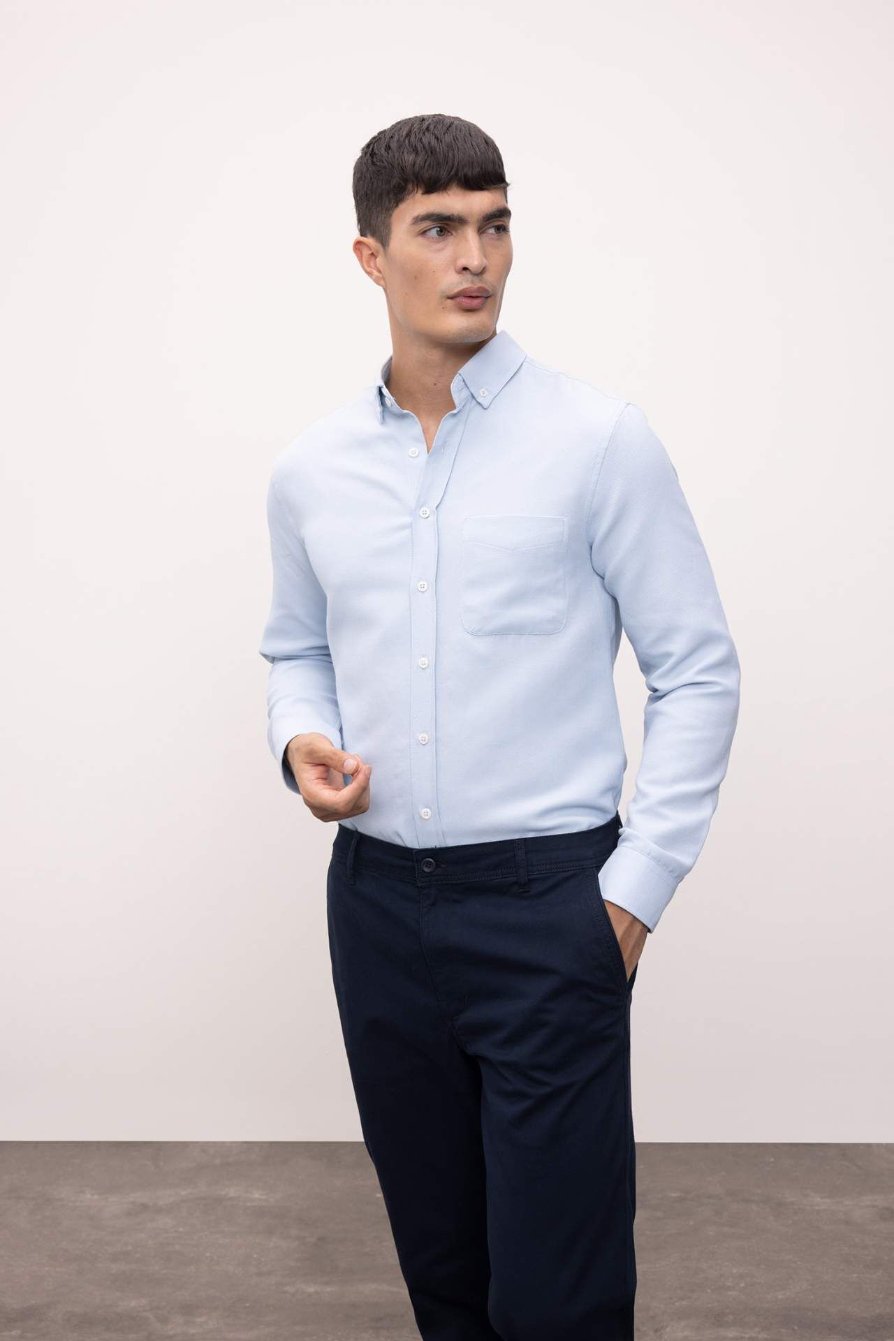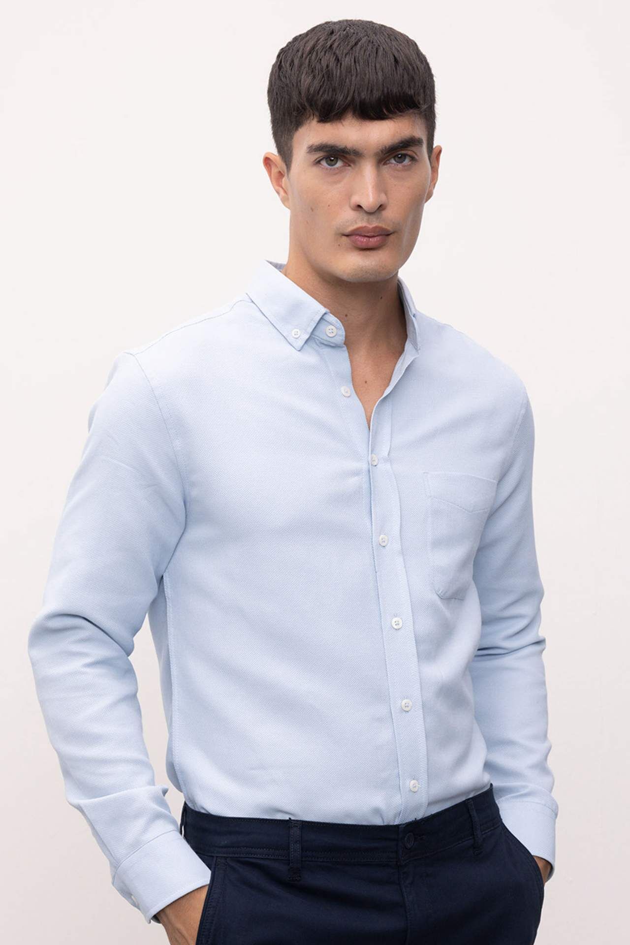 DeFactoFit Slim Fit Polo Yaka Dokulu Uzun Kollu Gömlek T2066AZ24AUBE723
