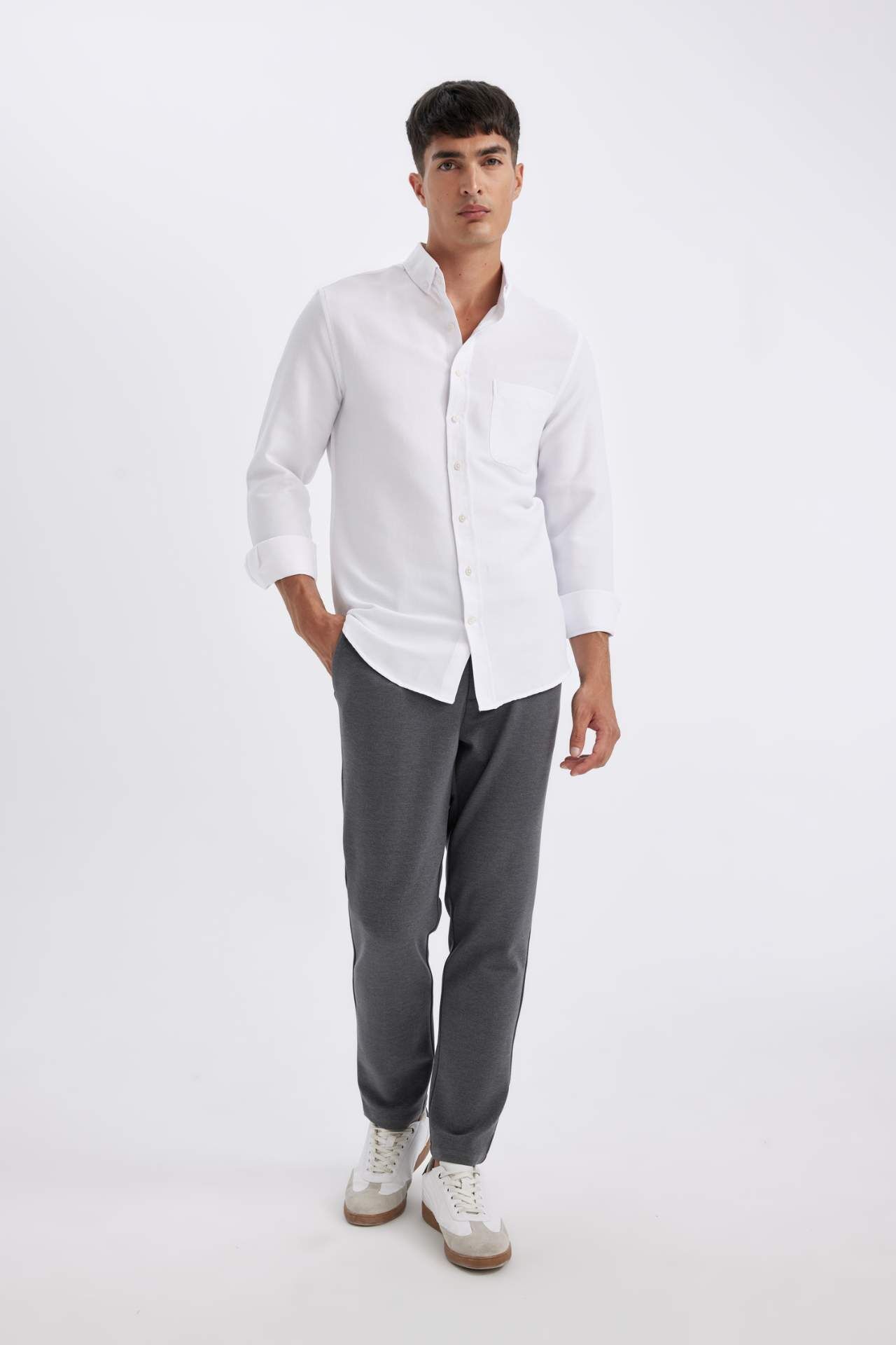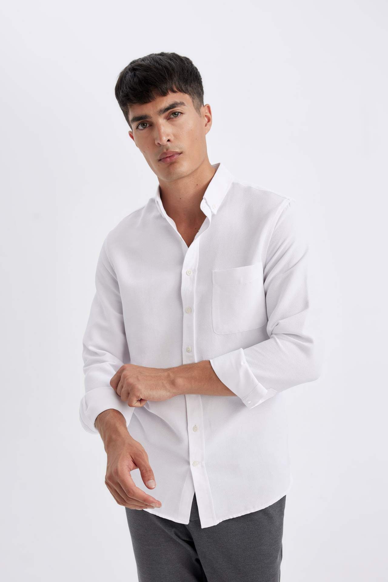 DeFactoFit Slim Fit Polo Yaka Dokulu Uzun Kollu Gömlek T2066AZ24AUWT34