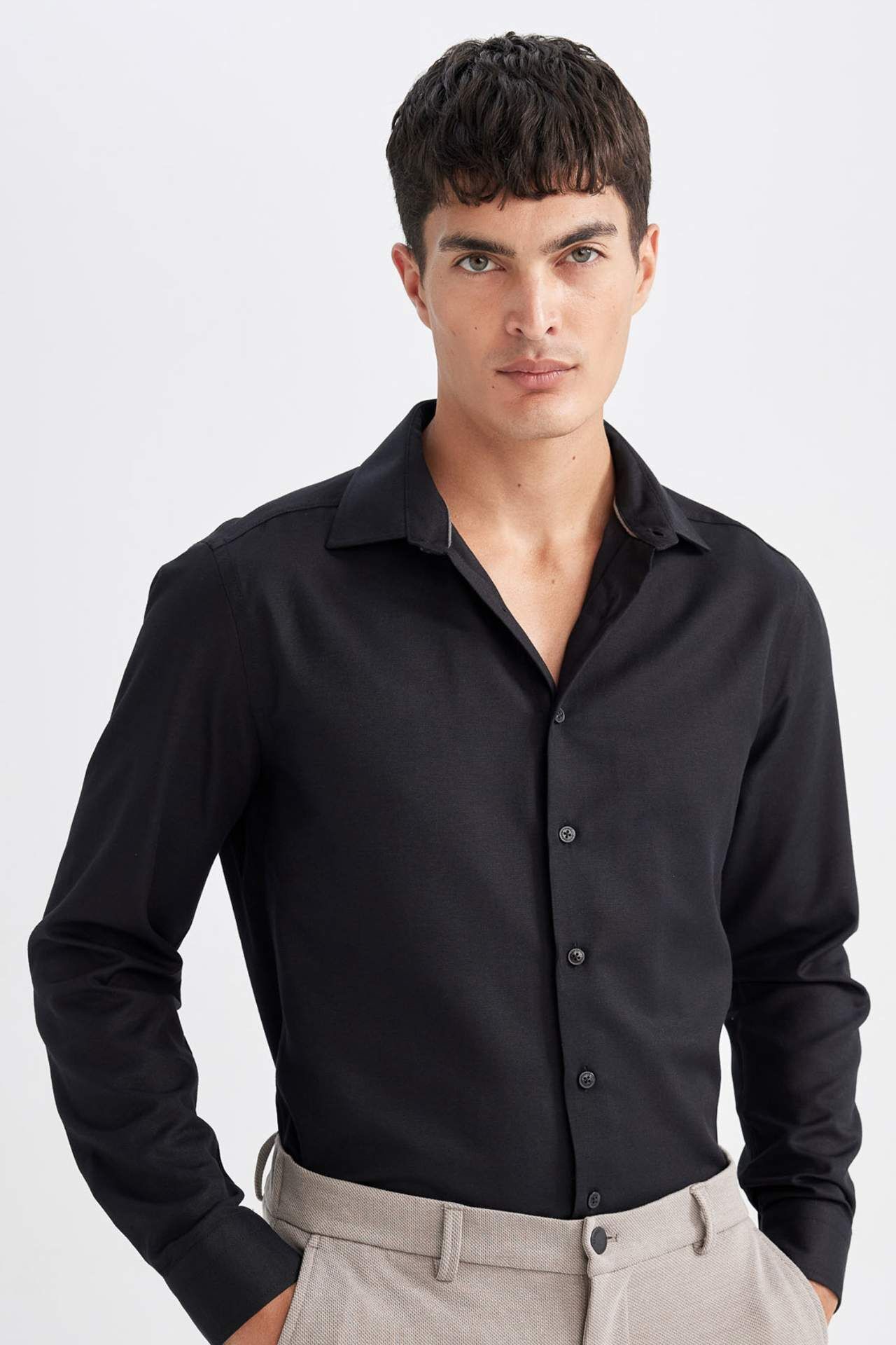DeFacto Slim Fit Polo Yaka Oxford Uzun Kollu Gömlek R4340AZ24AUBK27