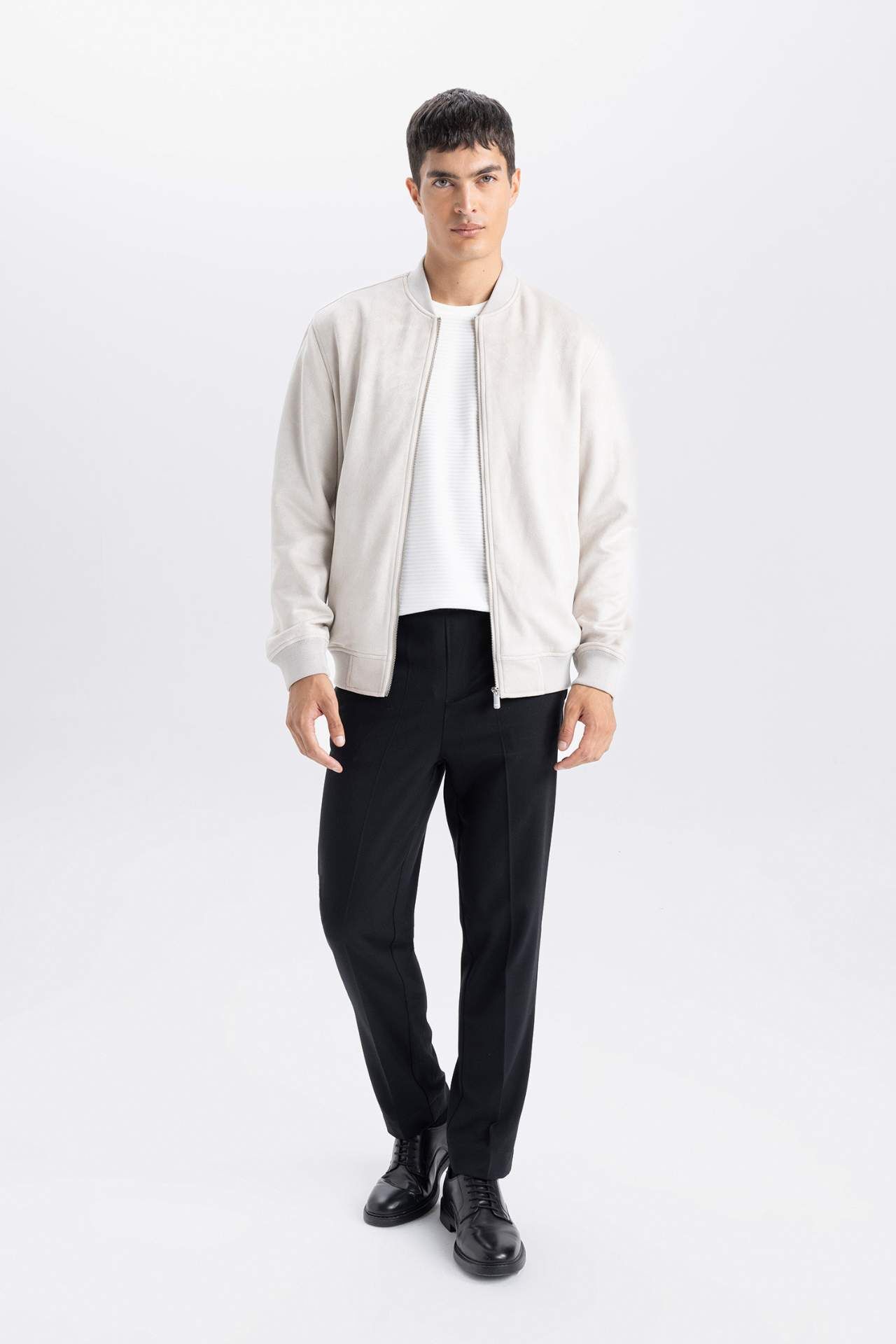 DeFacto Slim Fit Süet Bomber Mont Ceket Dar Kesim Kolej Yaka Fermuarlı Çift Cepli Mevsimlik Hafif A3866AX25SPBG106