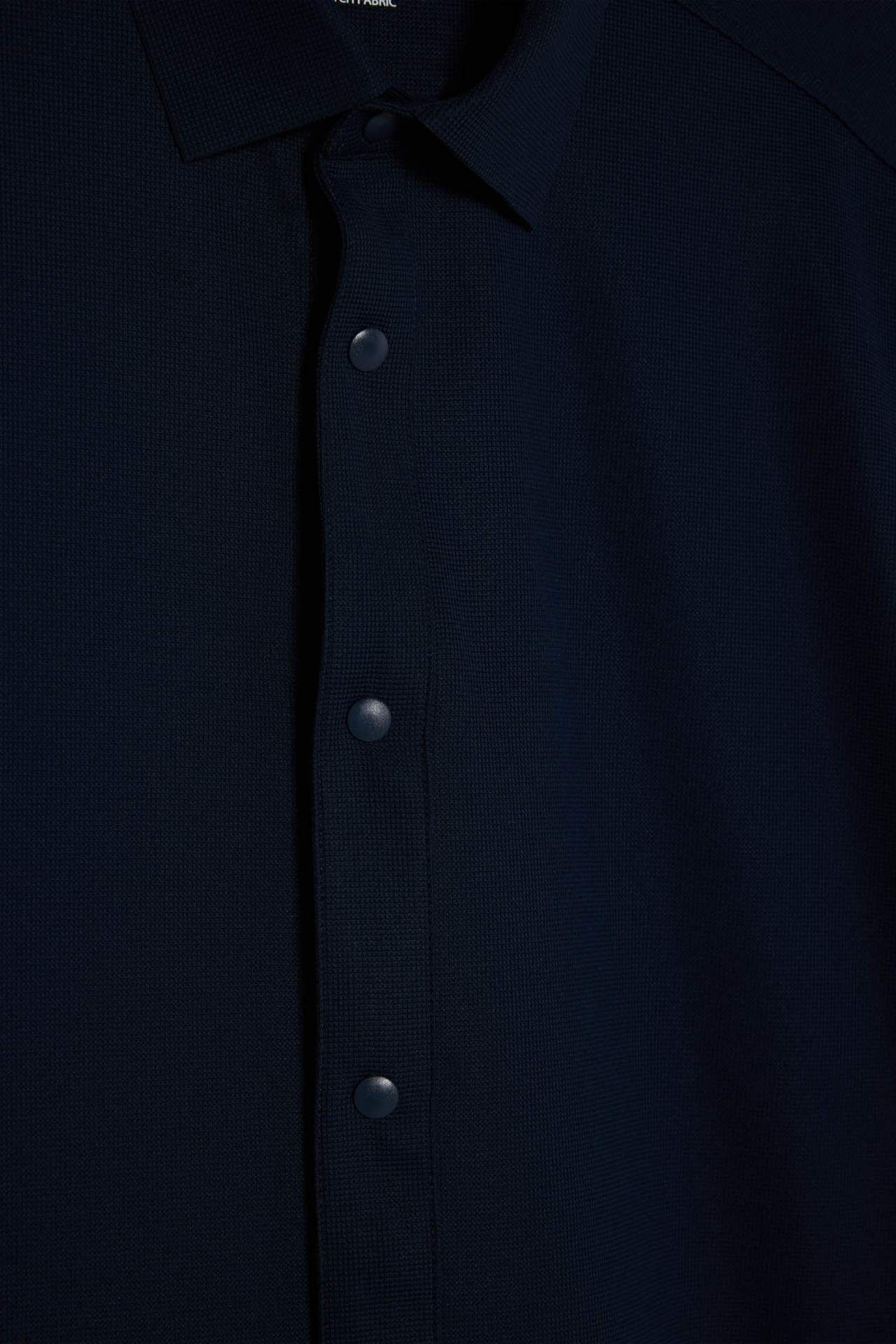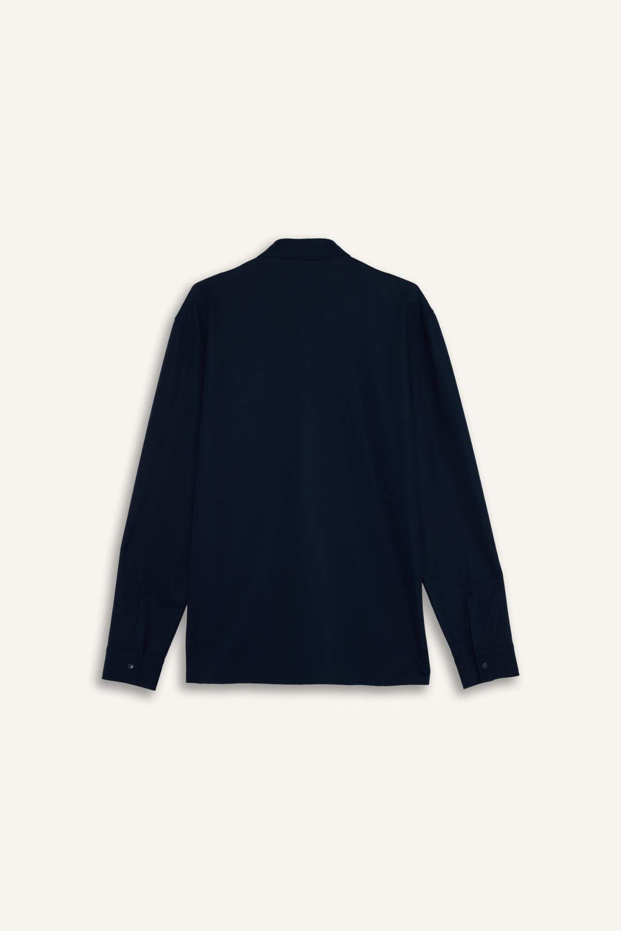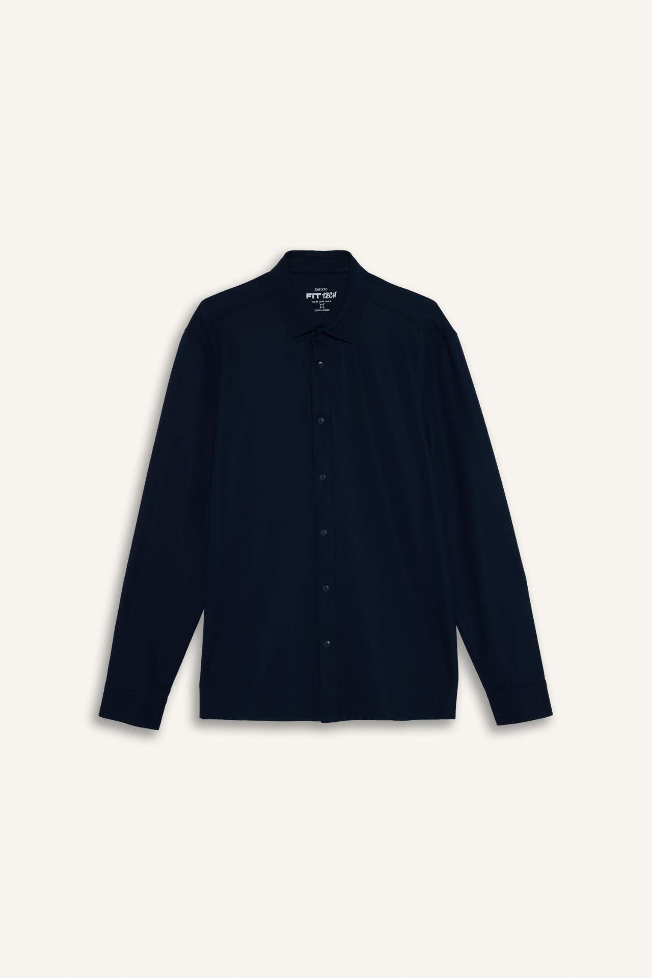 Yetişkin erkekler için örme Lacivert Uzun Kollu Slim Fit Gömlek. İnce kumaş kalınlığı ile ilkbahar/yaz mevsimine uygun temel bir parça. Poliamid 82%,Elastan 18% Manken Bedeni: Göğüs: 94 Boy: 1,87 Basen: 93 Bel: 75