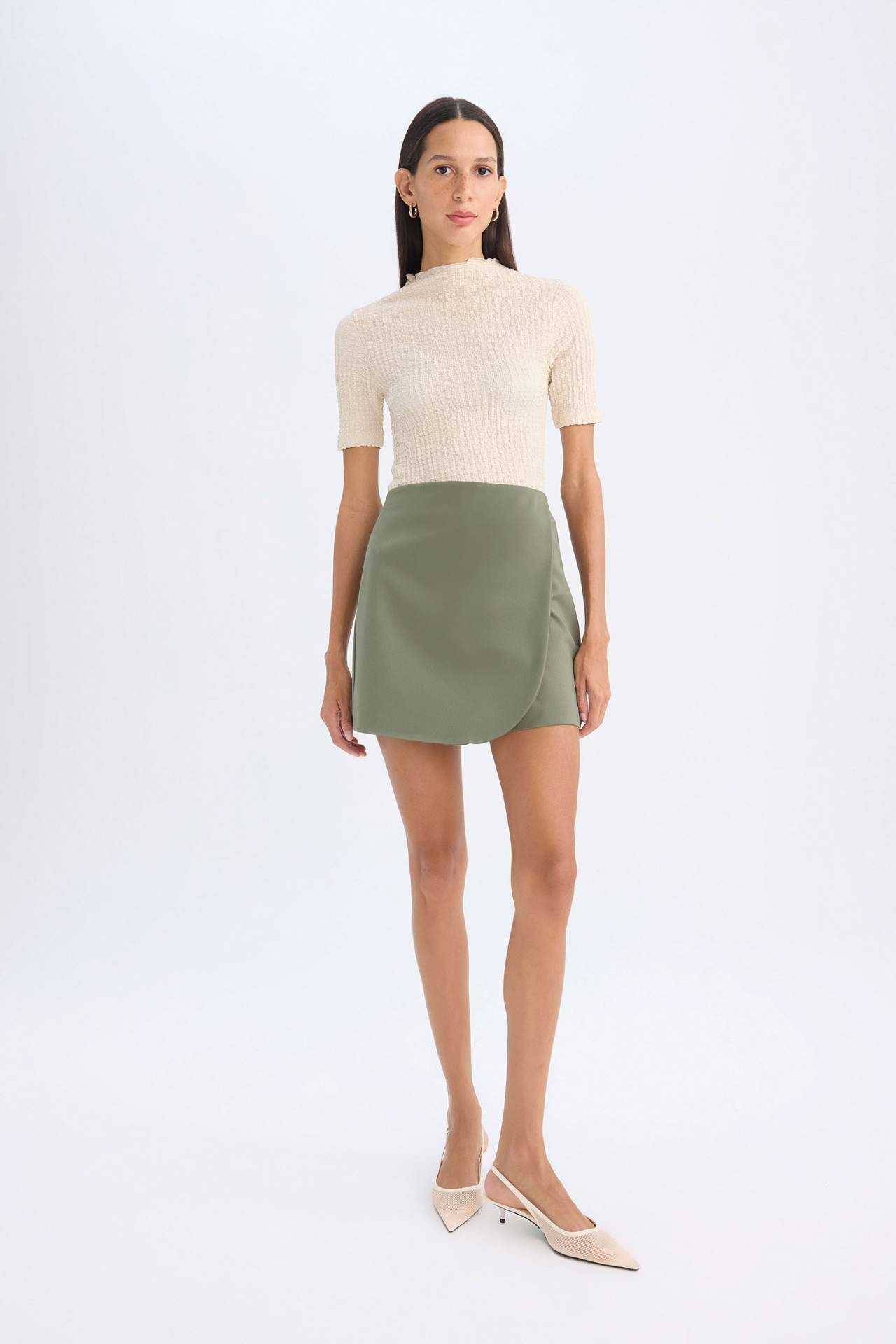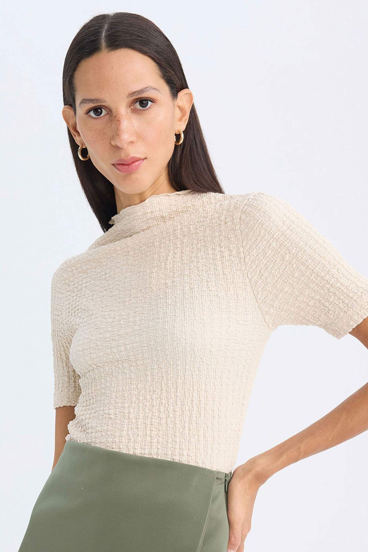 DeFacto Slim Fit Yarım Balıkçı Yaka Bürümcük Kısa Kollu Tişört
