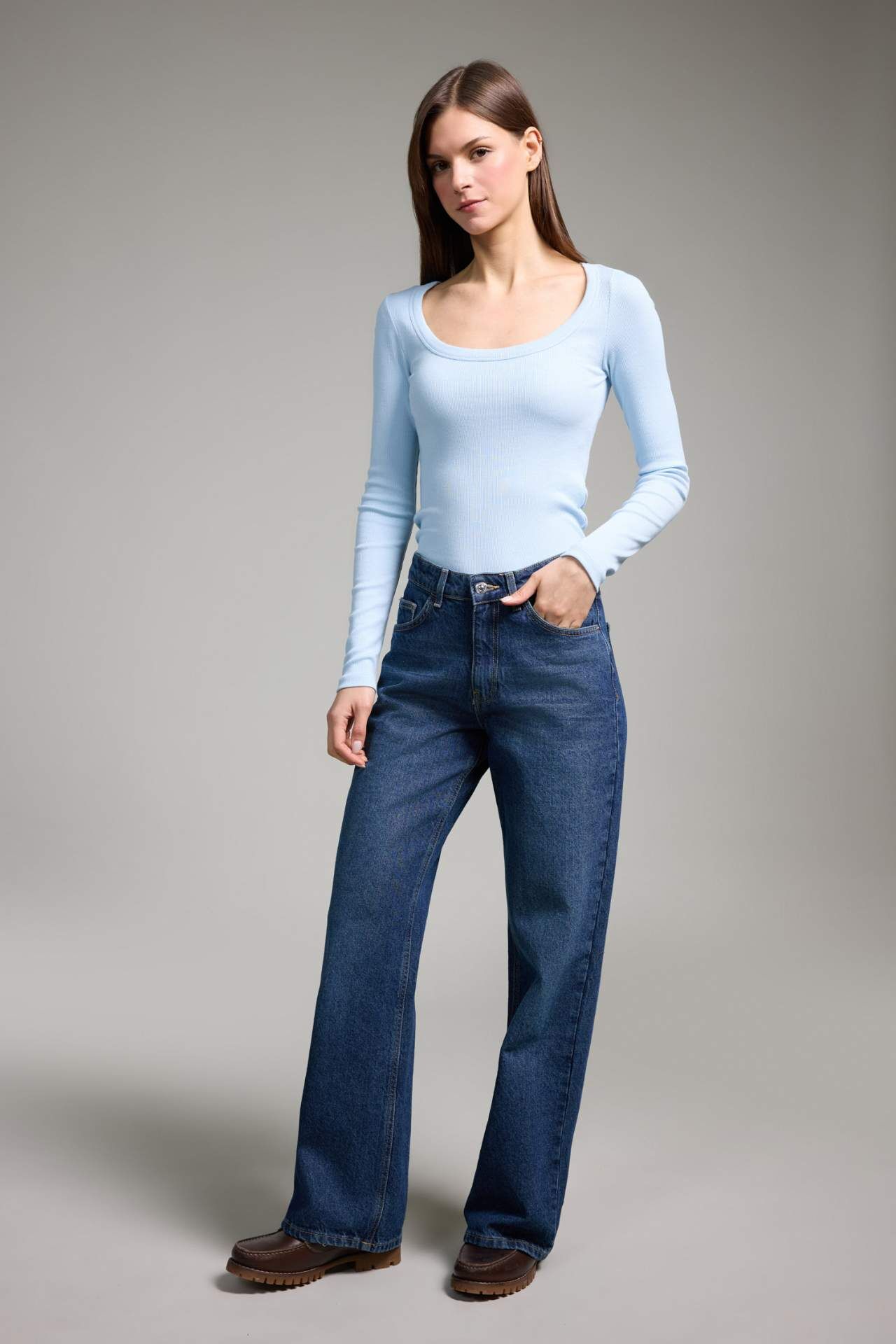 Slım Fıt Yuvarlak Yaka Basıc Düz Fitilli Kaşkorse Uzun Kollu Tişört