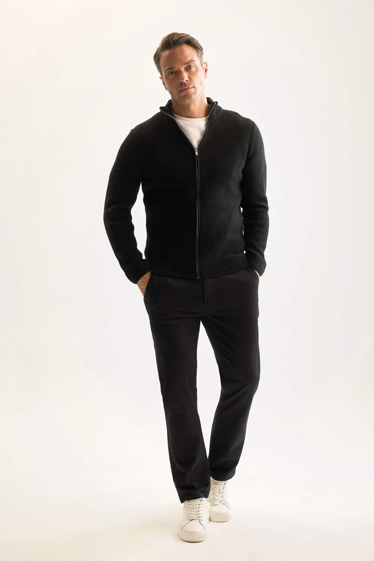 DeFactoFit Standart Fit Balıkçı Yaka Waffle Hırka R1195AZ24WNBK27