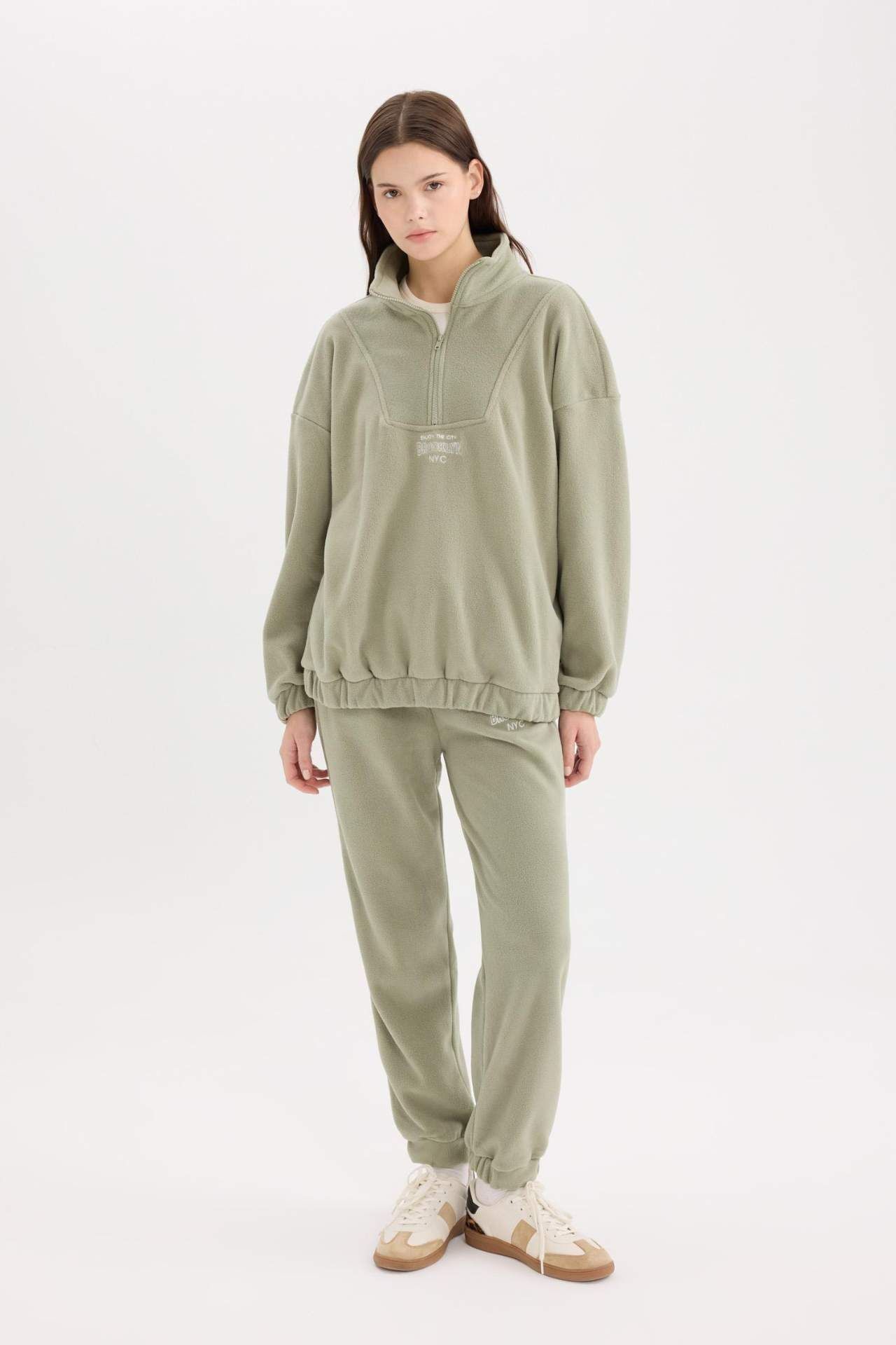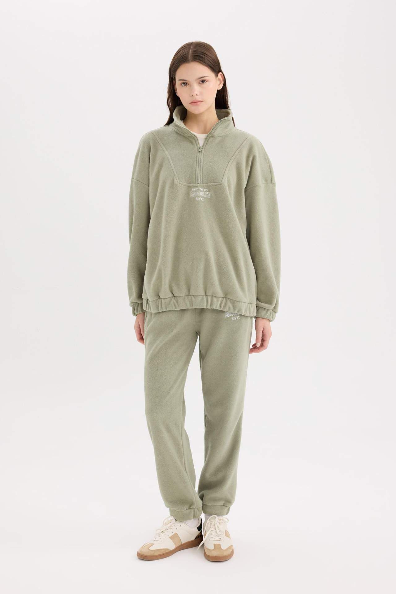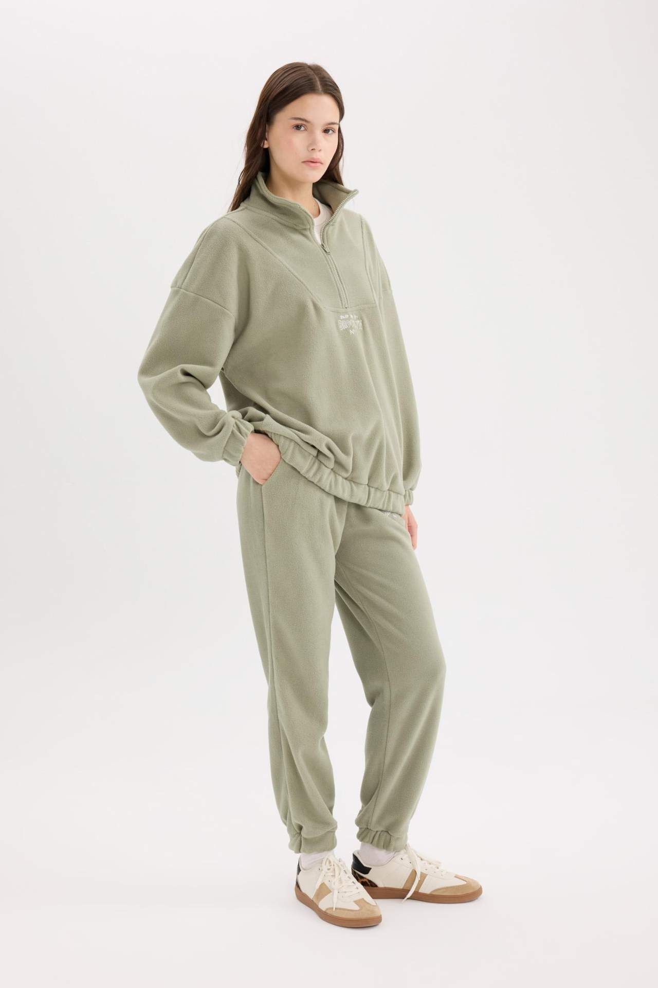 DeFacto Standart Fit Beli Bağcıklı Lastikli Paça Cepli Baskılı Uzun Boy Polar Eşofman Altı Y2650AZ24WNKH382