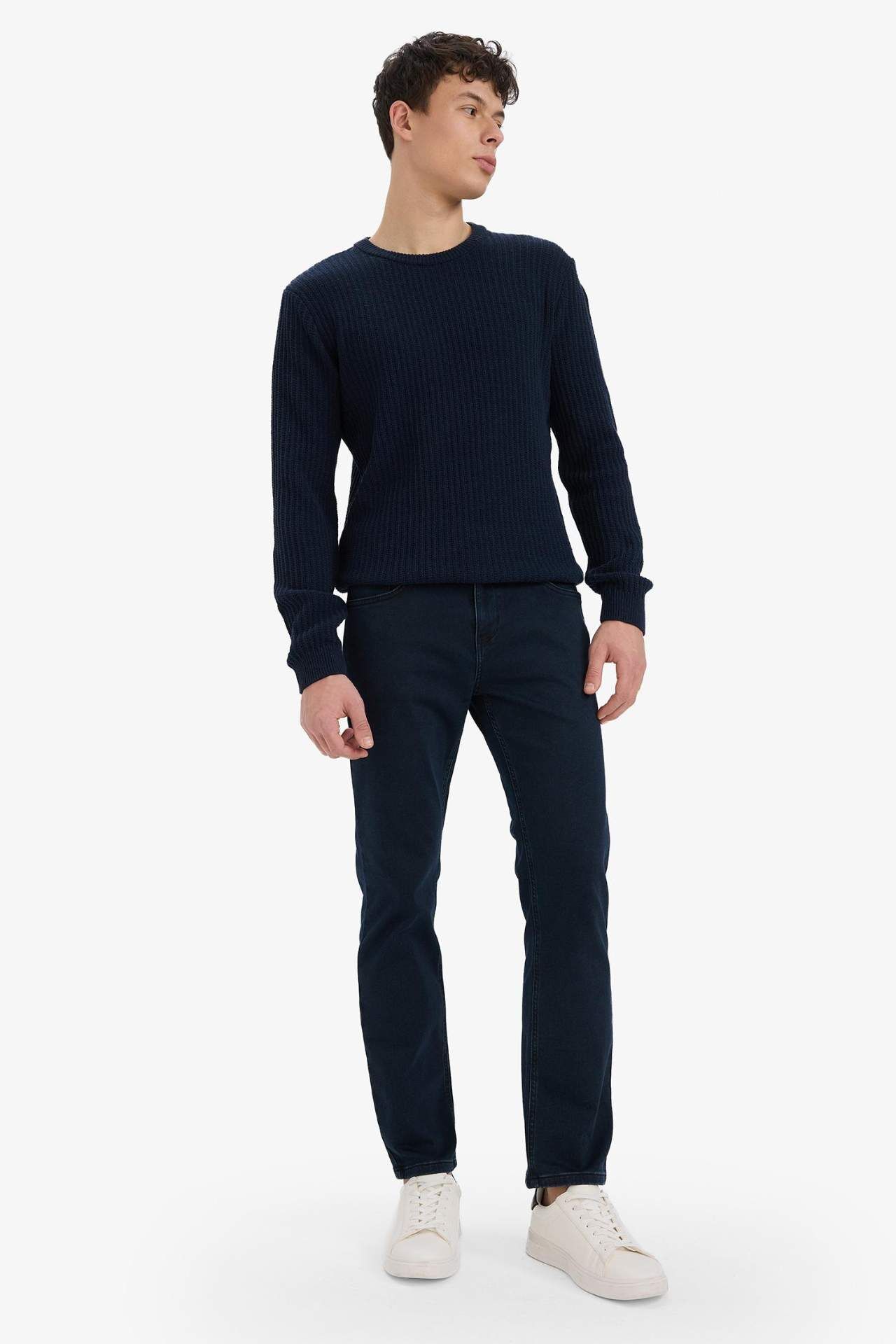 DeFacto Standart Fit Bisiklet Yaka Basic Dokulu Triko Kazak E0811AX25WNNV64