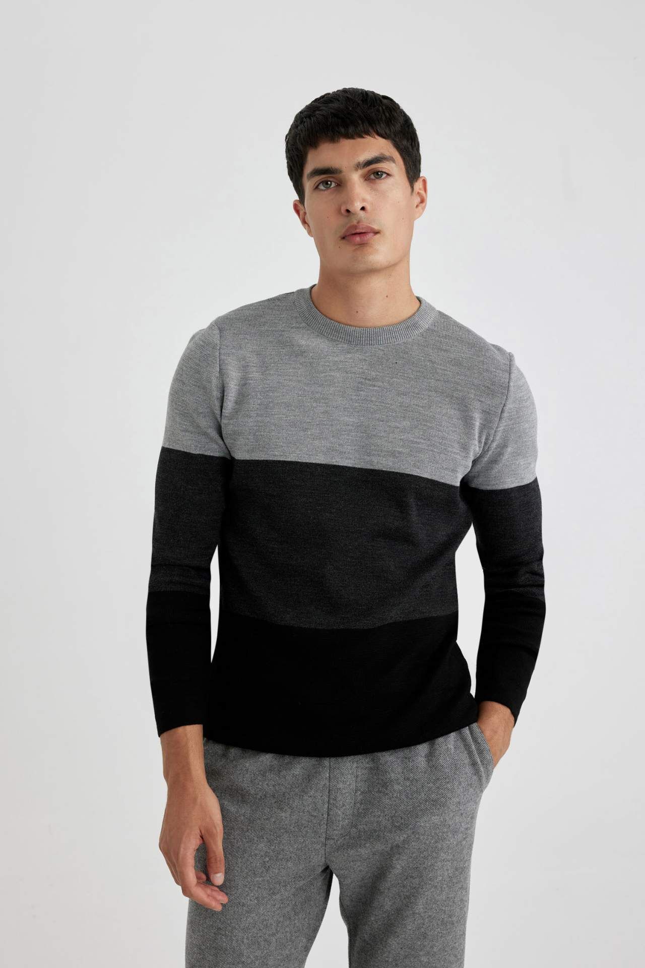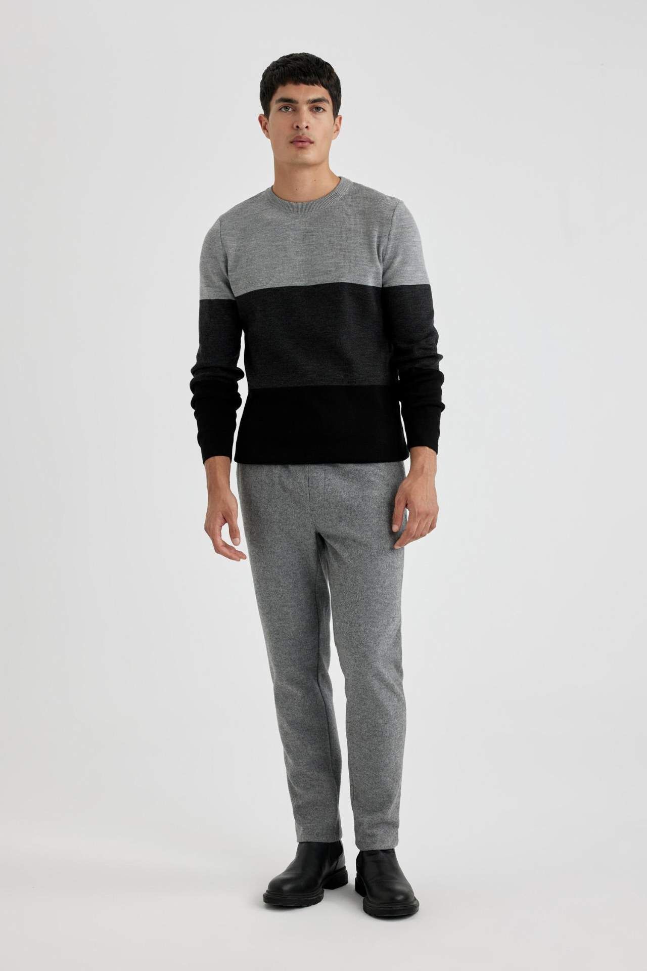DeFacto Standart Fit Bisiklet Yaka Kazak A9885AX23WNBK81