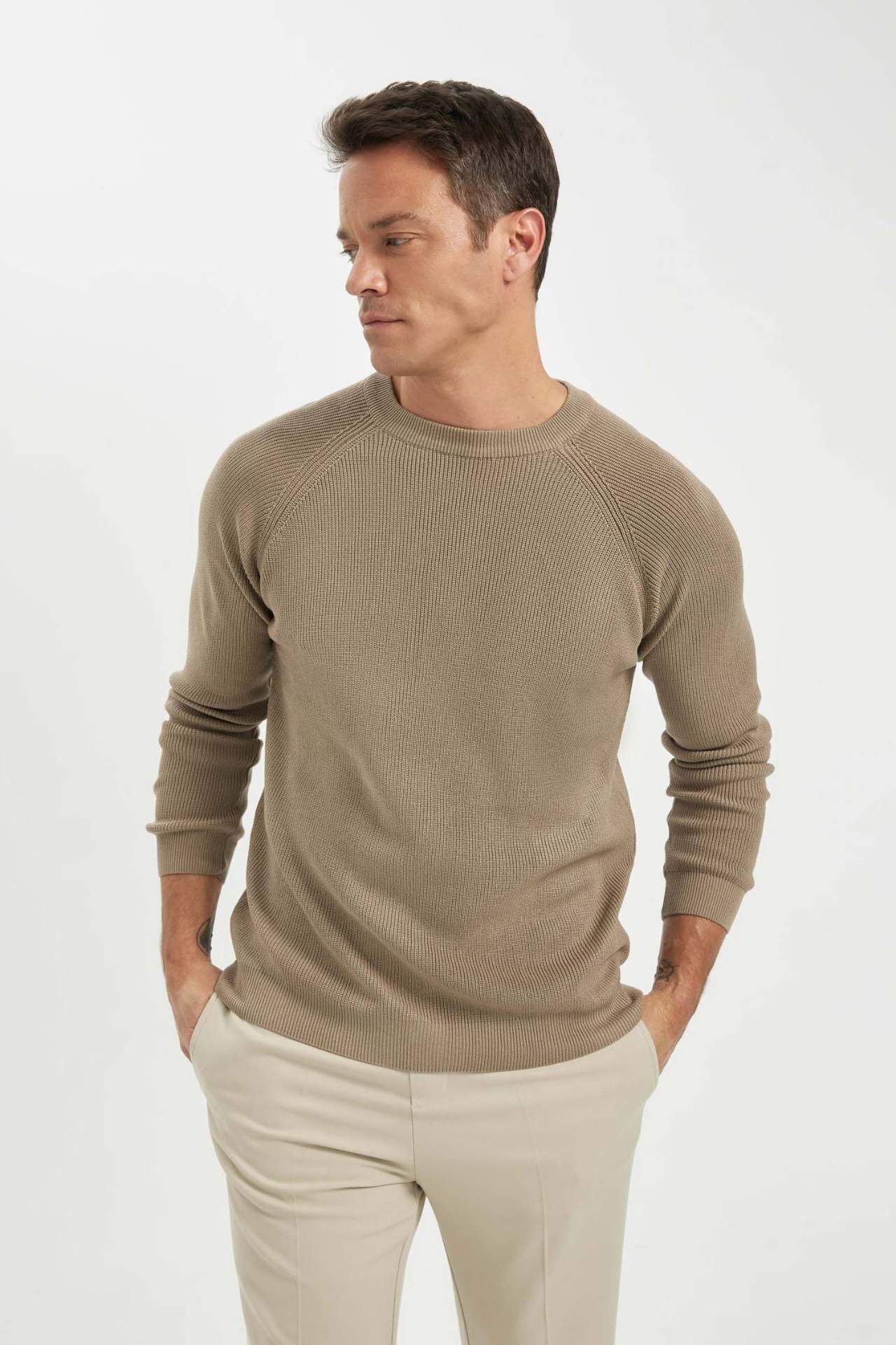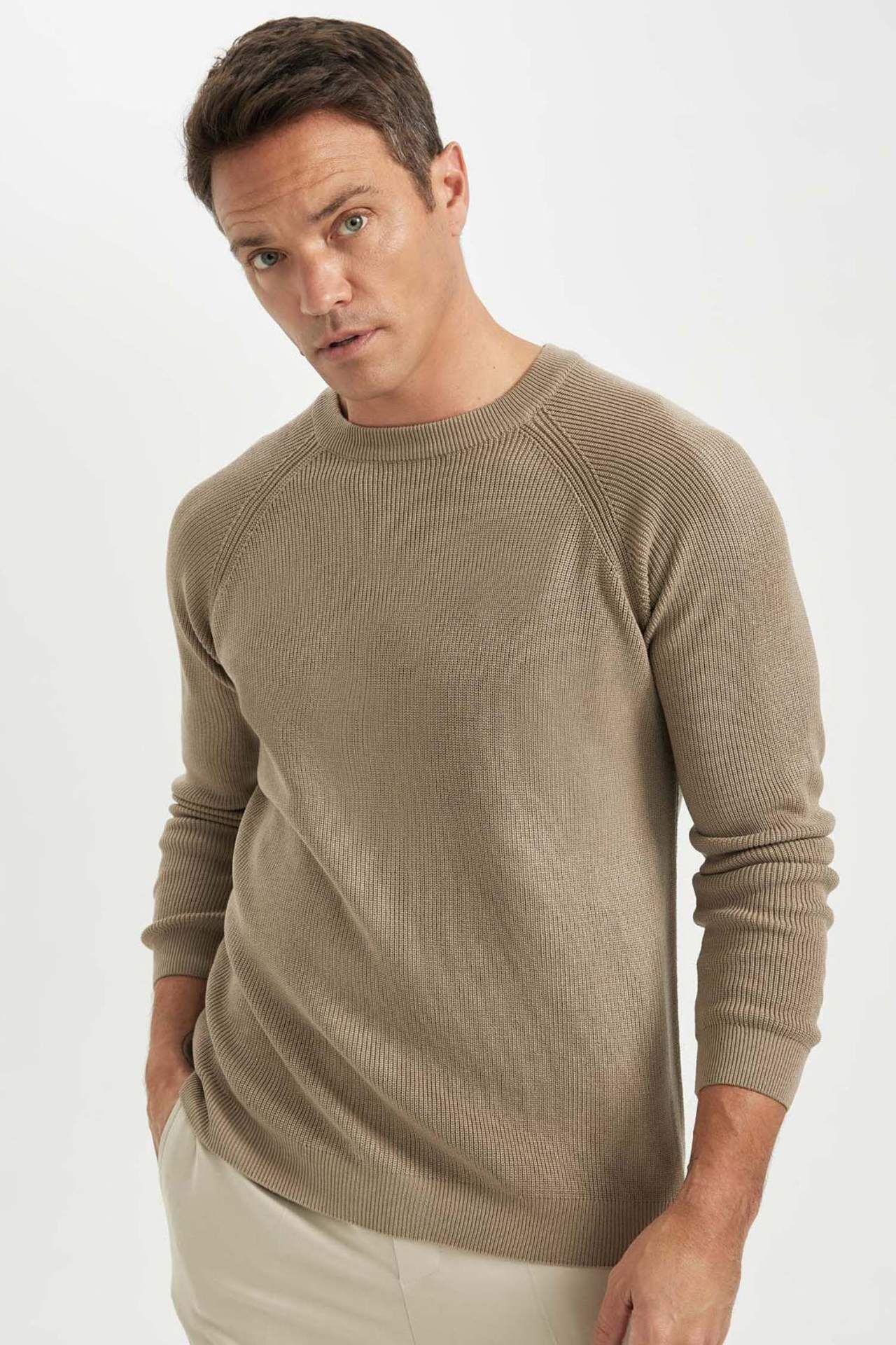 DeFacto DeFactoFit Standart Fit Bisiklet Yaka Selanik Kumaş Kazak A8458AX24WNBG684