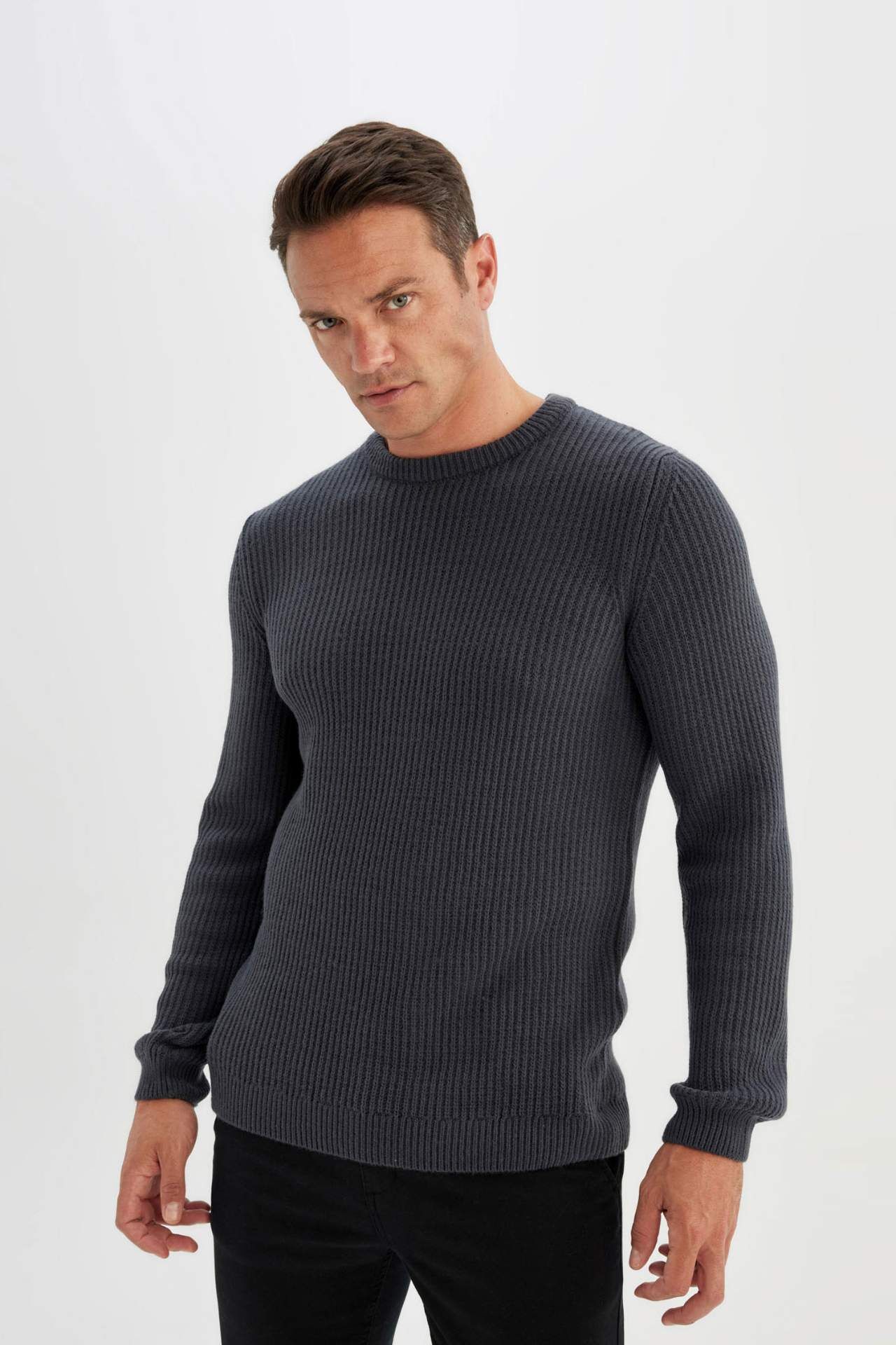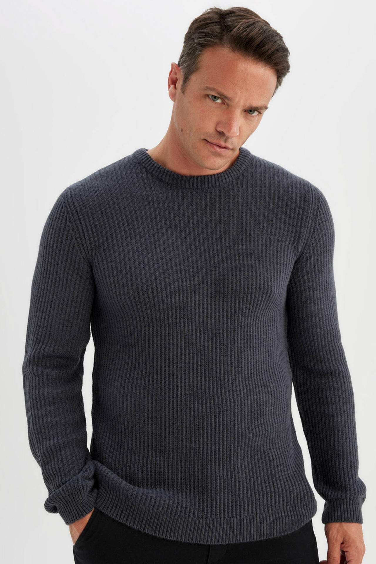 DeFactoFit Standart Fit Bisiklet Yaka Selanik Kumaş Kazak C8814AX24WNAR184