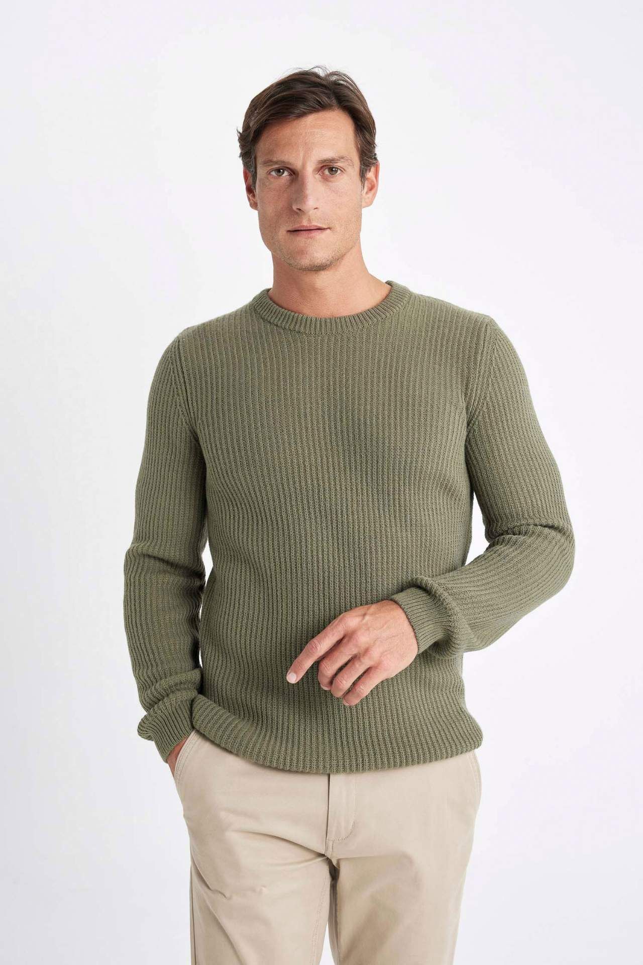 DeFactoFit Standart Fit Bisiklet Yaka Selanik Kumaş Kazak C8814AX24WNKH381