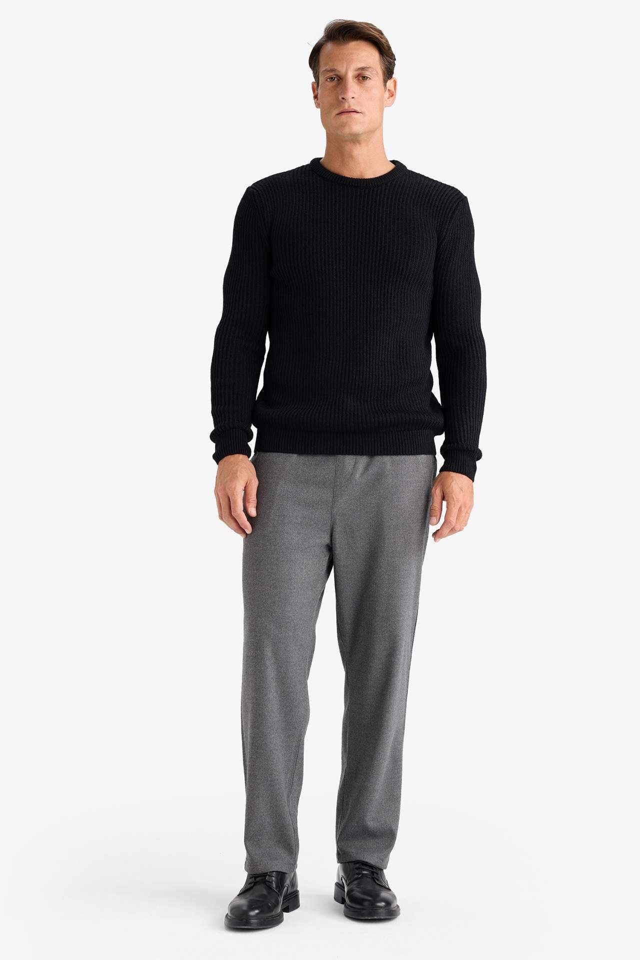 DeFacto Standart Fit Bisiklet Yaka Triko Kazak C8814AX24WNBK81