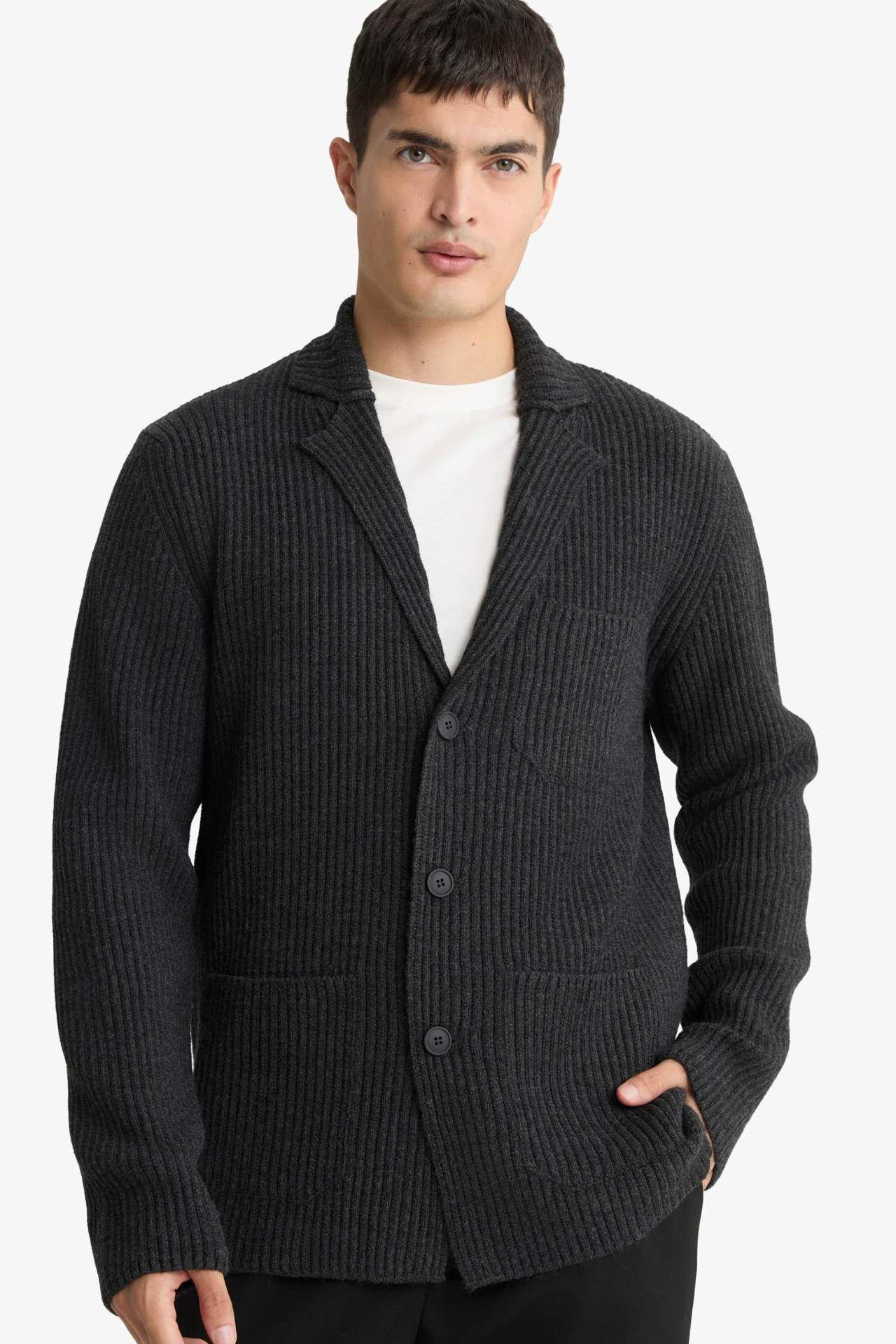 DeFacto Standart Fit Ceket Yaka Triko Hırka