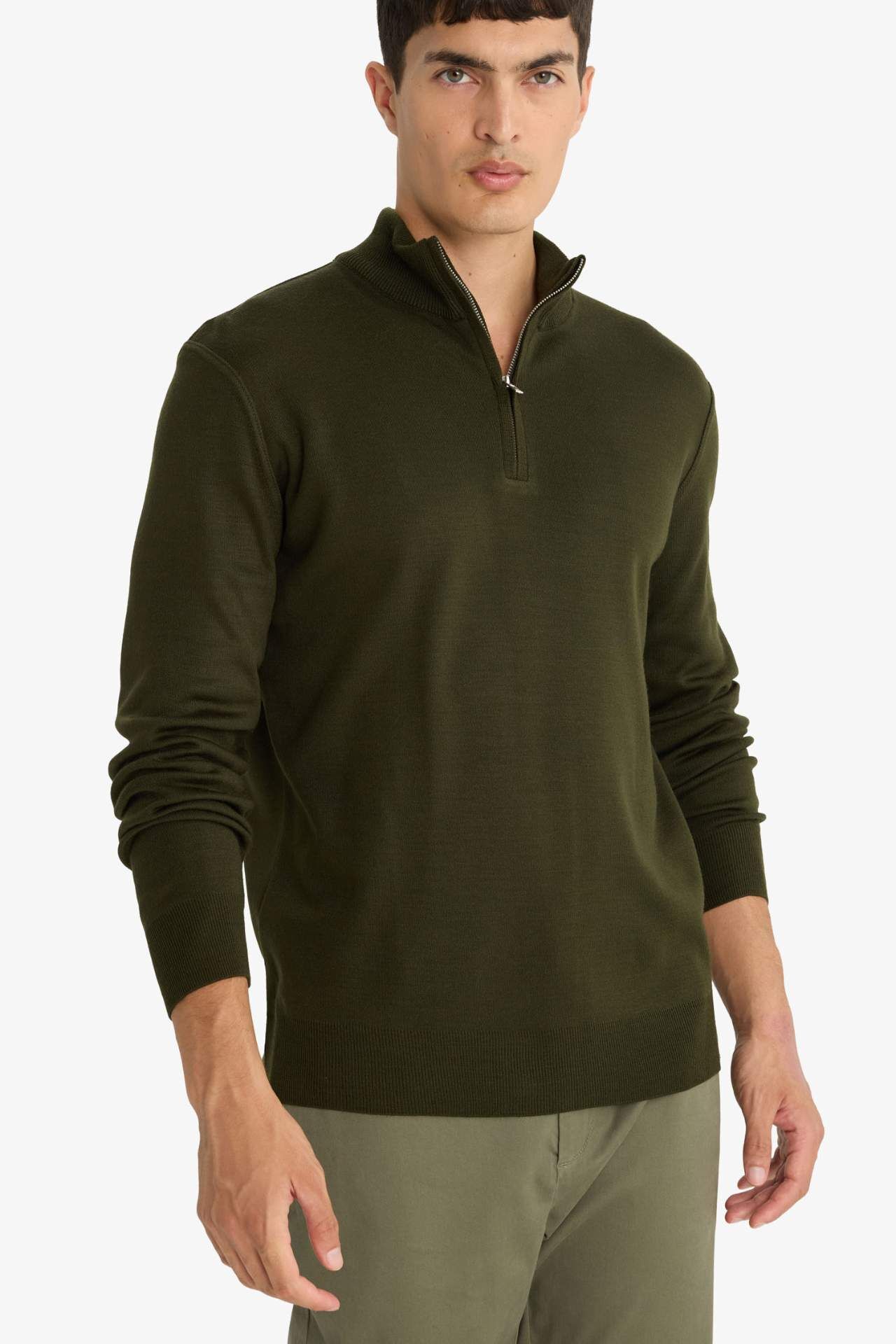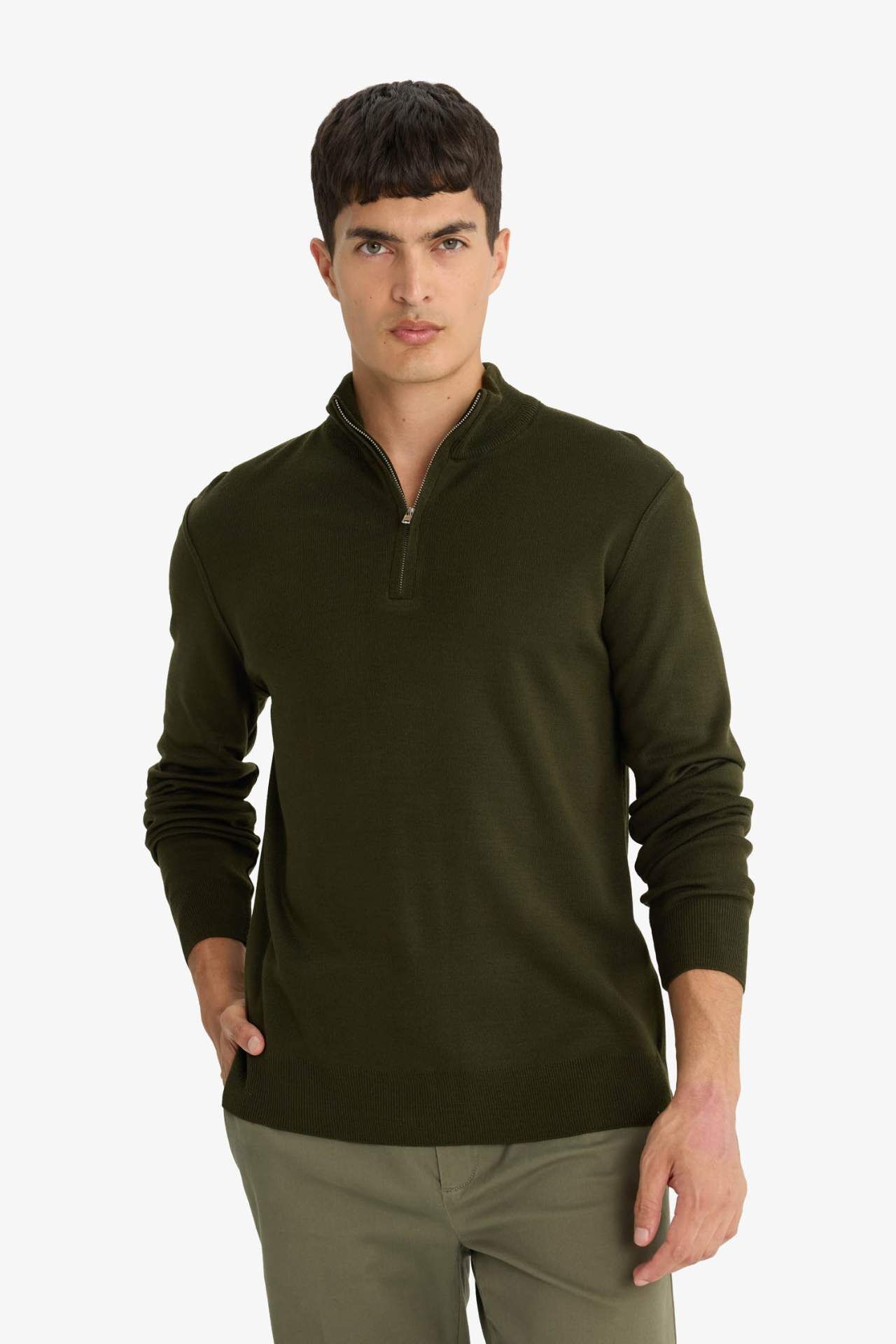 DeFacto Standart Fit Fermuarlı Yaka Triko Kazak F5095AX25AUKH381