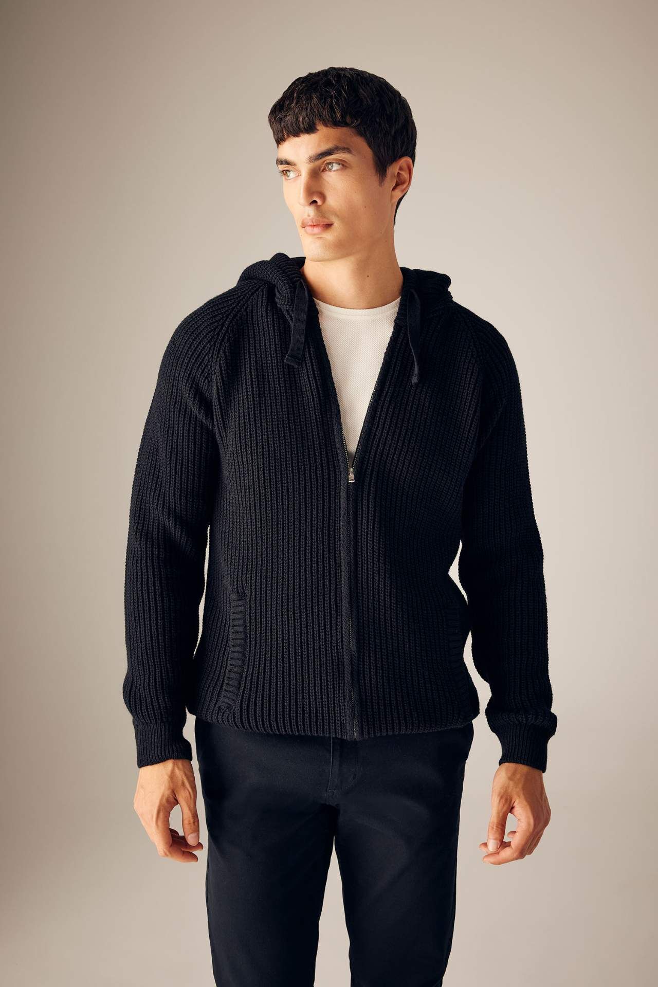 DeFacto Standart Fit Kapüşonlu Triko Hırka