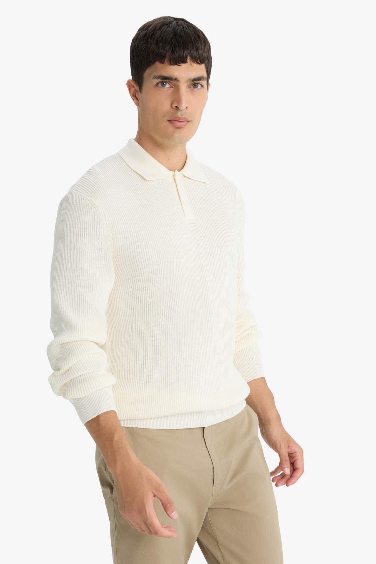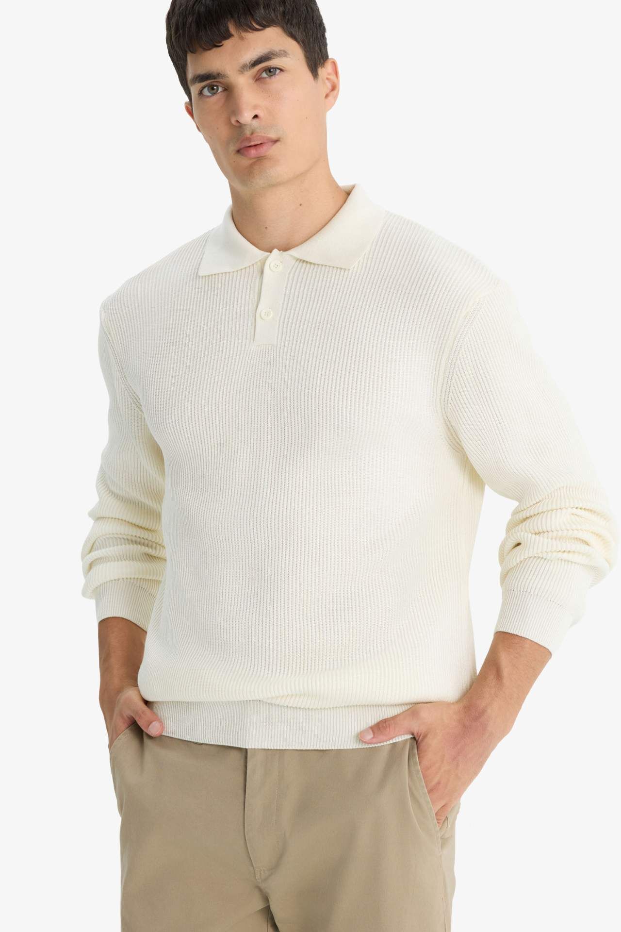 DeFacto Standart Fit Polo Yaka Düğmeli Triko Kazak D1959AX25AUER139