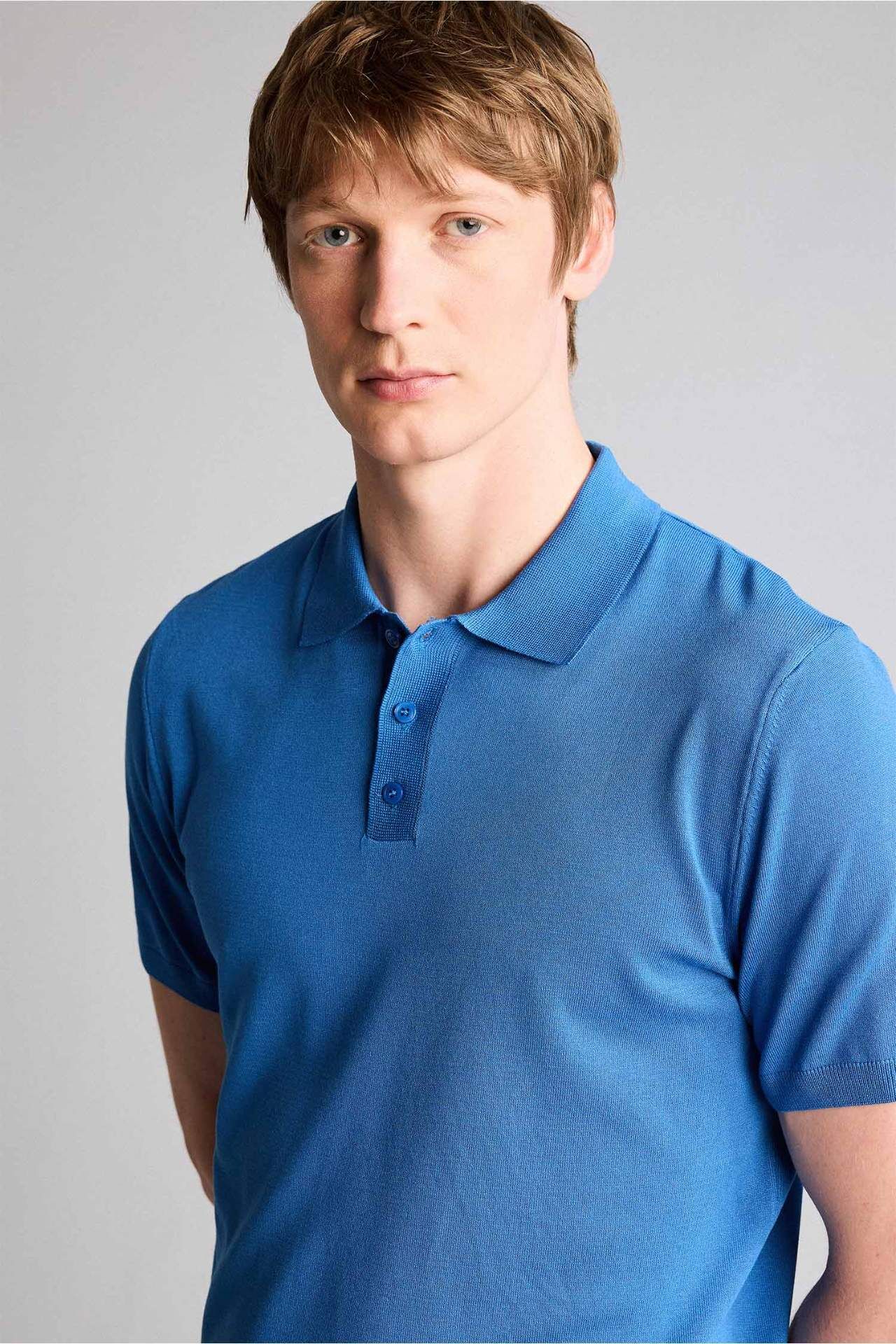 Temel Çeşit Erkek için mavi triko kumaştan üretilmiş, polo yaka, kısa kollu standart fit tişört. İlkbahar/Yaz mevsimlerinde rahatlıkla tercih edebilirsiniz. Premium kalite ve standart fit ile şıklığı keşfedin. Viskoz 58%,Poliester 42% Manken Bedeni: Göğüs: 83 Boy: 1,83 Basen: 90 Bel: 64