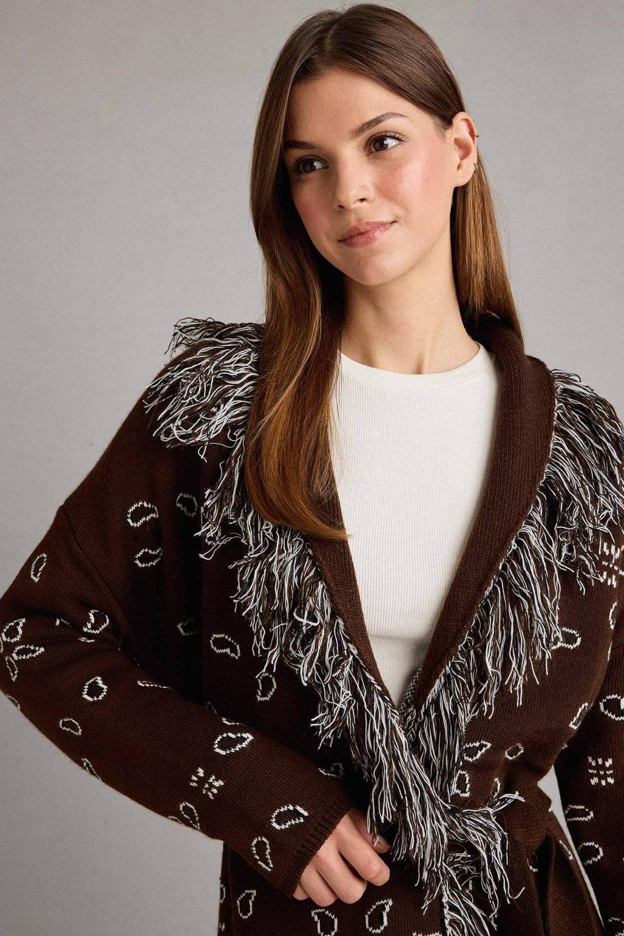Standart Fit Püskül Detaylı Uzun Hırka