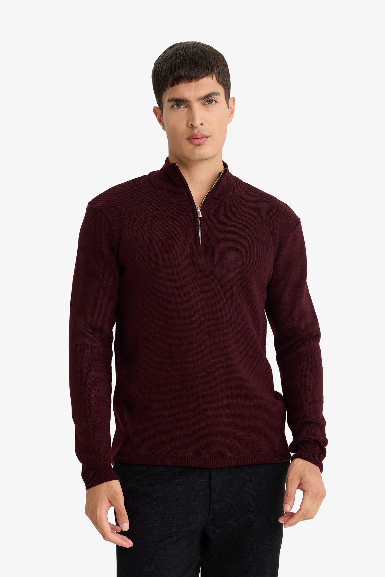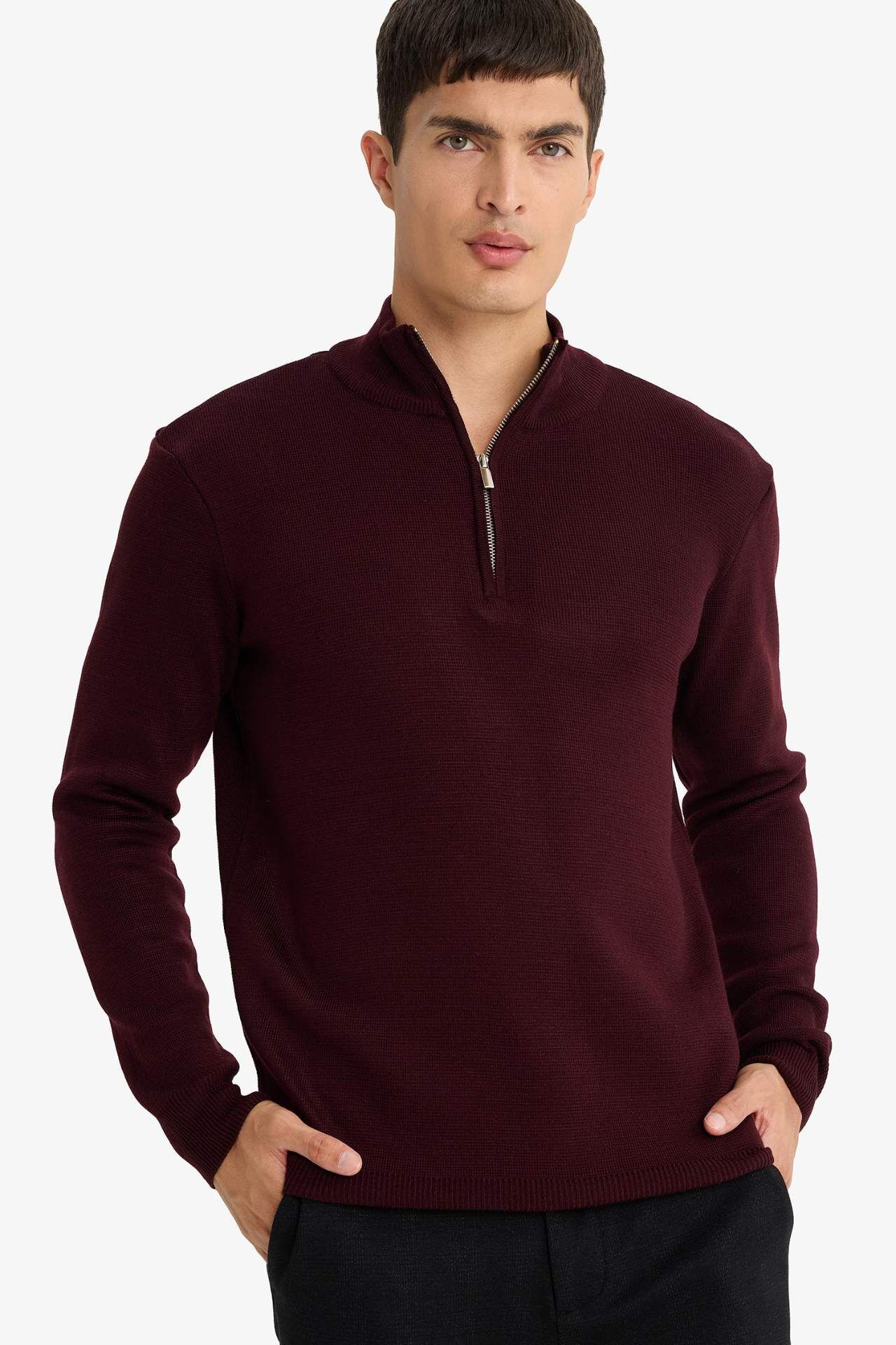 DeFacto Standart Fit Yarım Fermuarlı Triko Kazak A5184AX25AUBR34