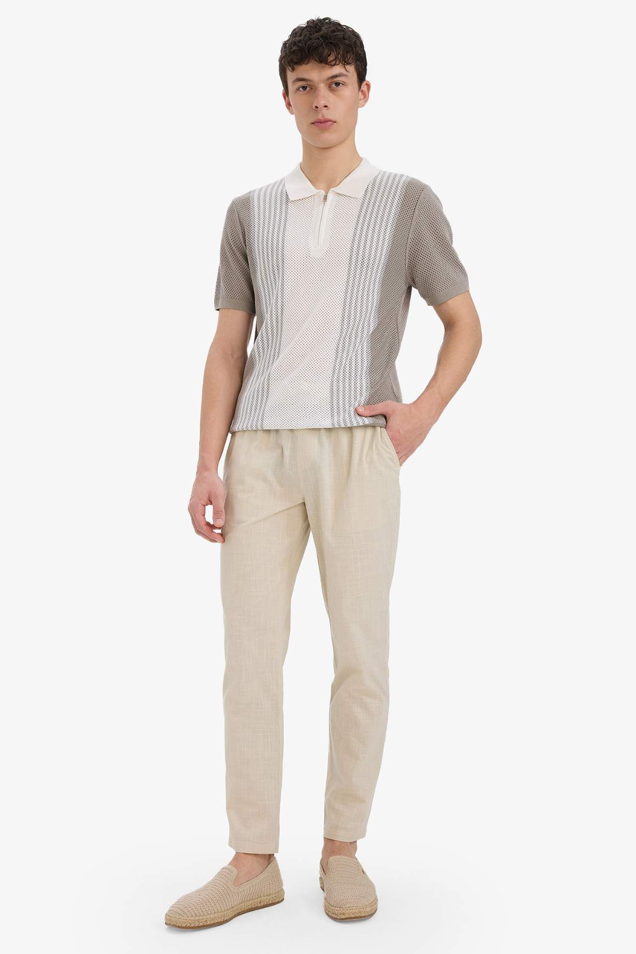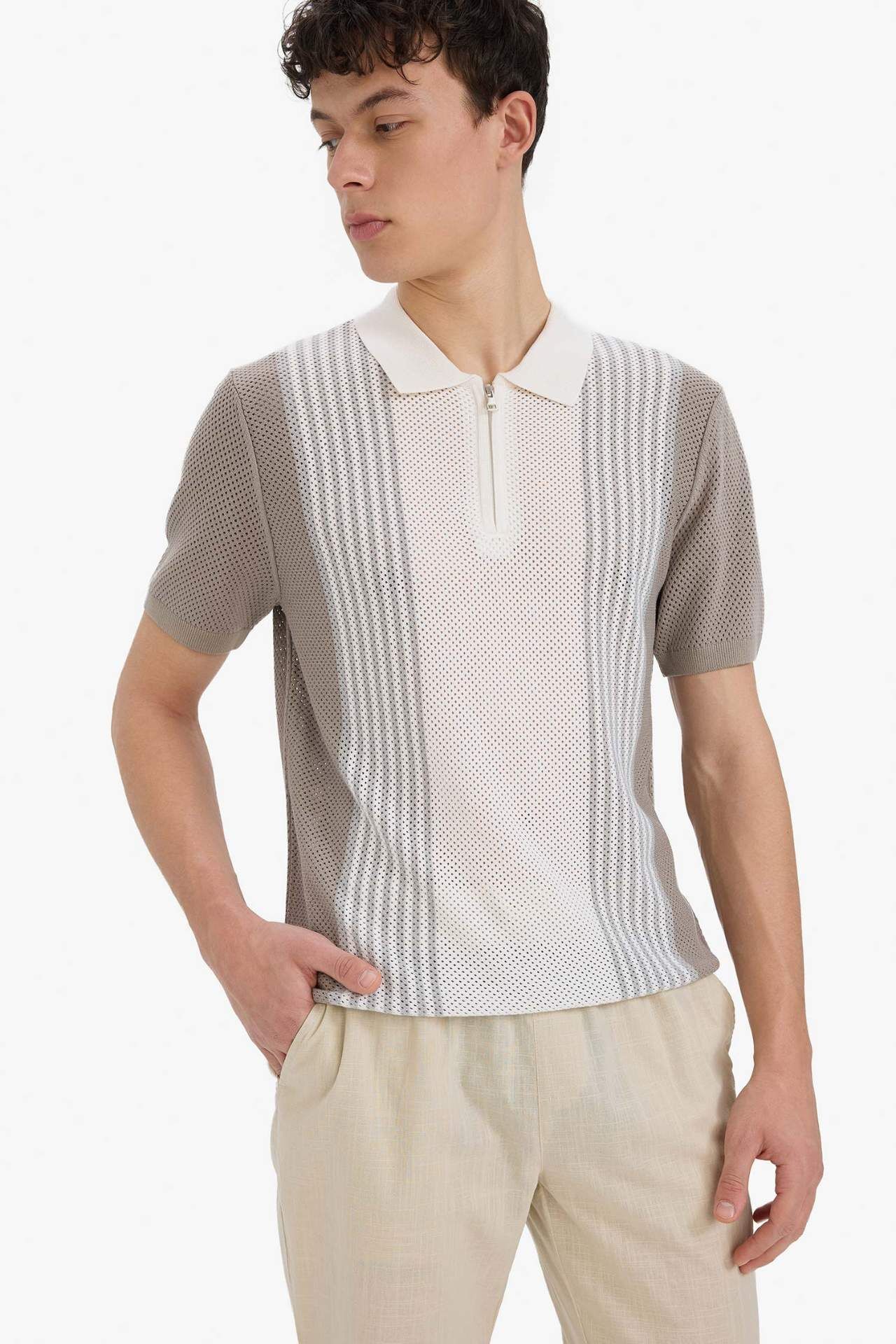 DeFacto Standart Fit Yarım Fermuarlı Triko Kısa Kollu Polo Tişört E5438AX25SMBG404