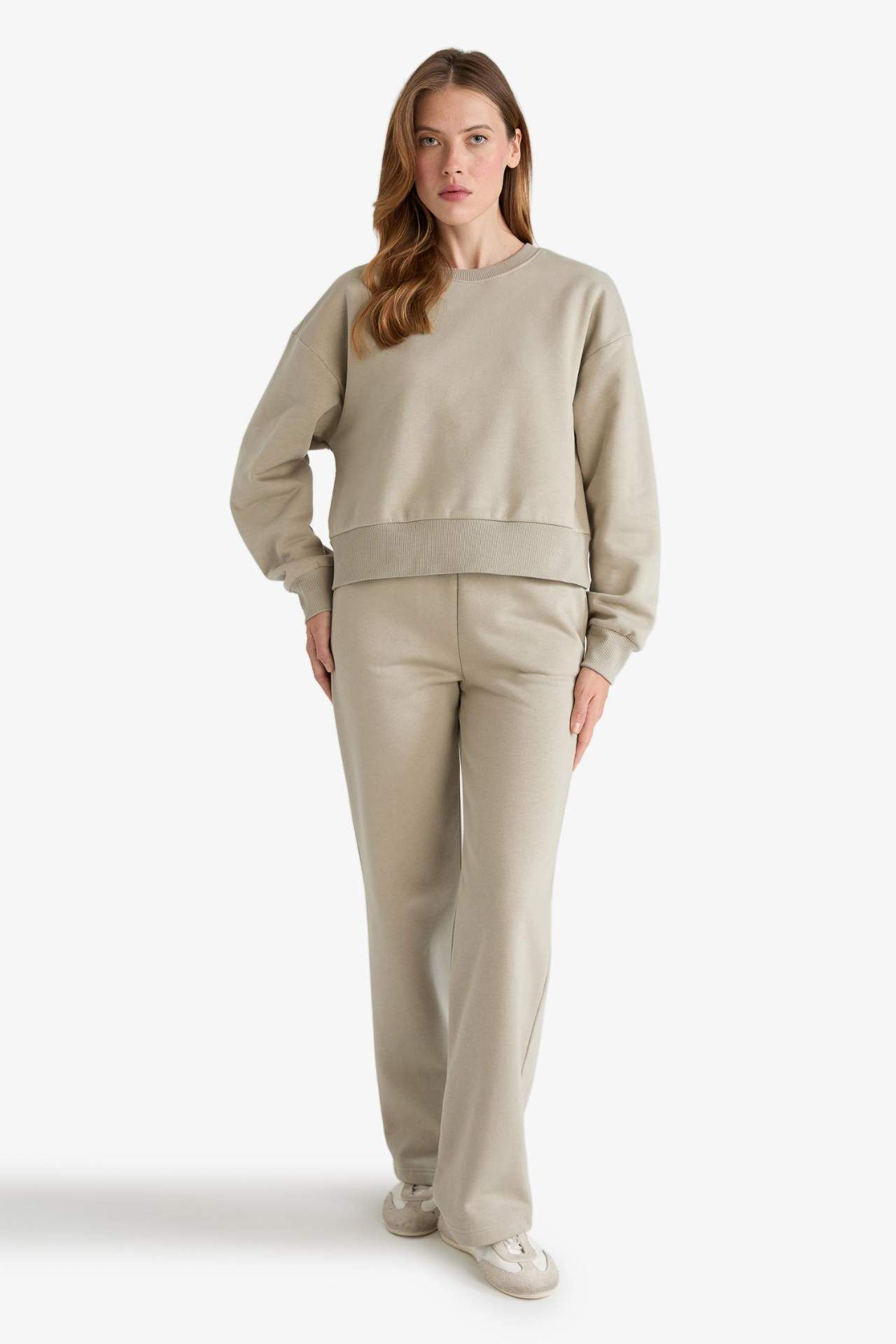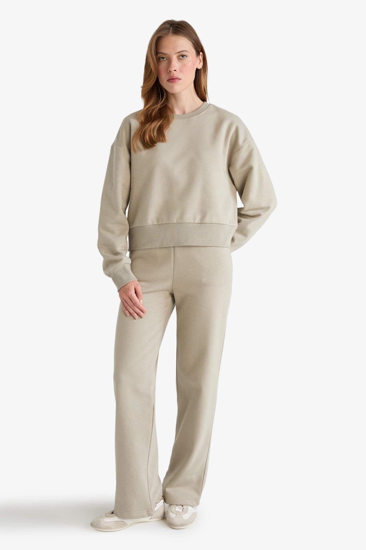 DeFacto Straight Fit Basic Düz Cepli Yüksek Bel Kalın Sweatshirt Kumaşı Pantolon B8571AX25AUKH475