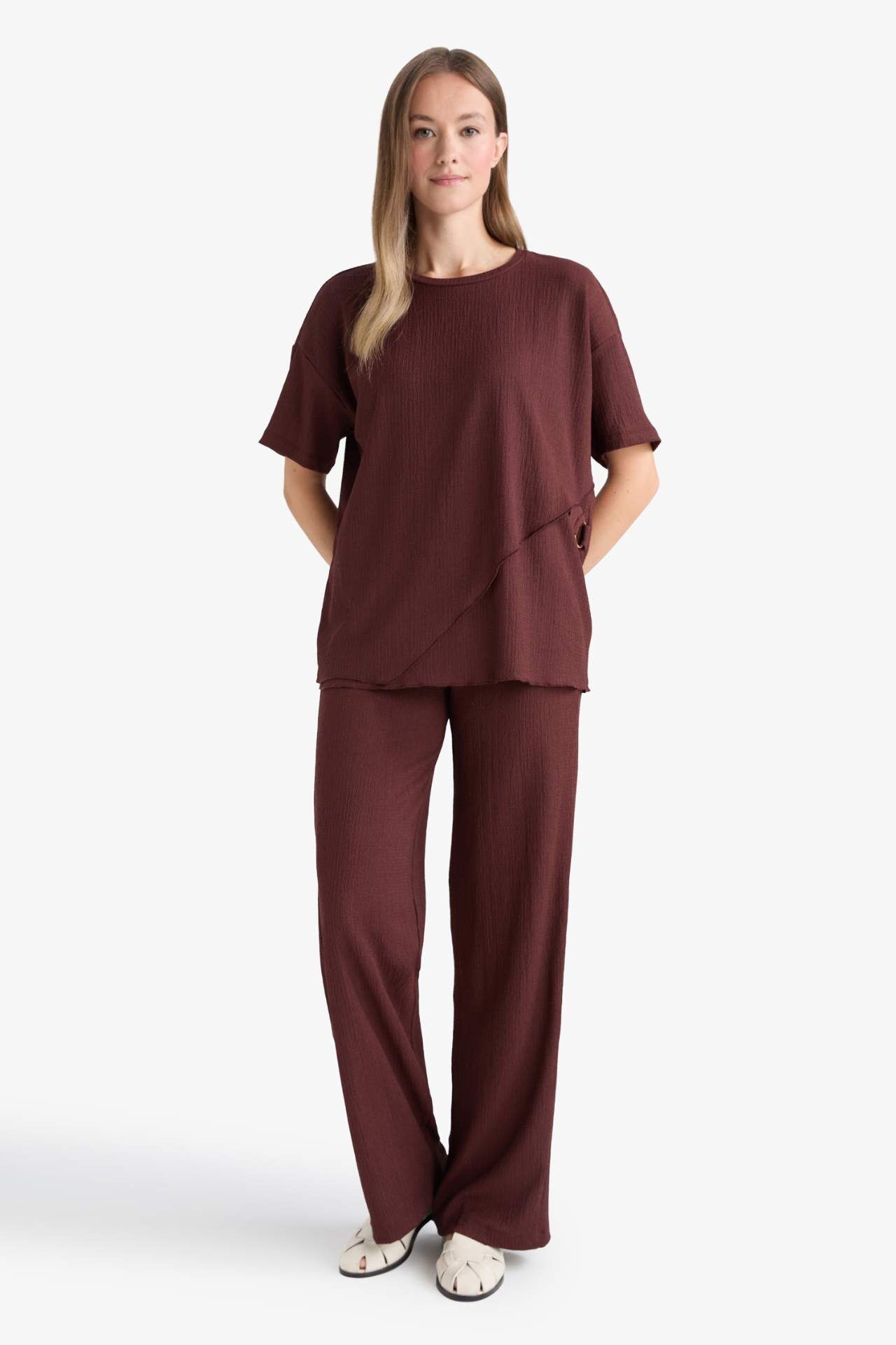 Rahatlığı ve şıklığı bir araya getiren Straight Fit Düz Paça Bürümcük Pantolon, hafif dokusu ve modern kesimiyle öne çıkar. Gün boyu konfor sunarken, düz paça yapısıyla zamansız bir stil vadeder. Hem günlük kullanım hem de ofis şıklığı için ideal bir tercihtir. Elastan 1%,Poliester 99%,Elastan 1%,Poliester 99%,Elastan 1%,Poliester 99%,Elastan 1%,Poliester 99%,Elastan 1%,Poliester 99%,Elastan 1%,Poliester 99% Manken Bedeni: Göğüs: 83 Boy: 1,76 Basen: 91 Bel: 60
