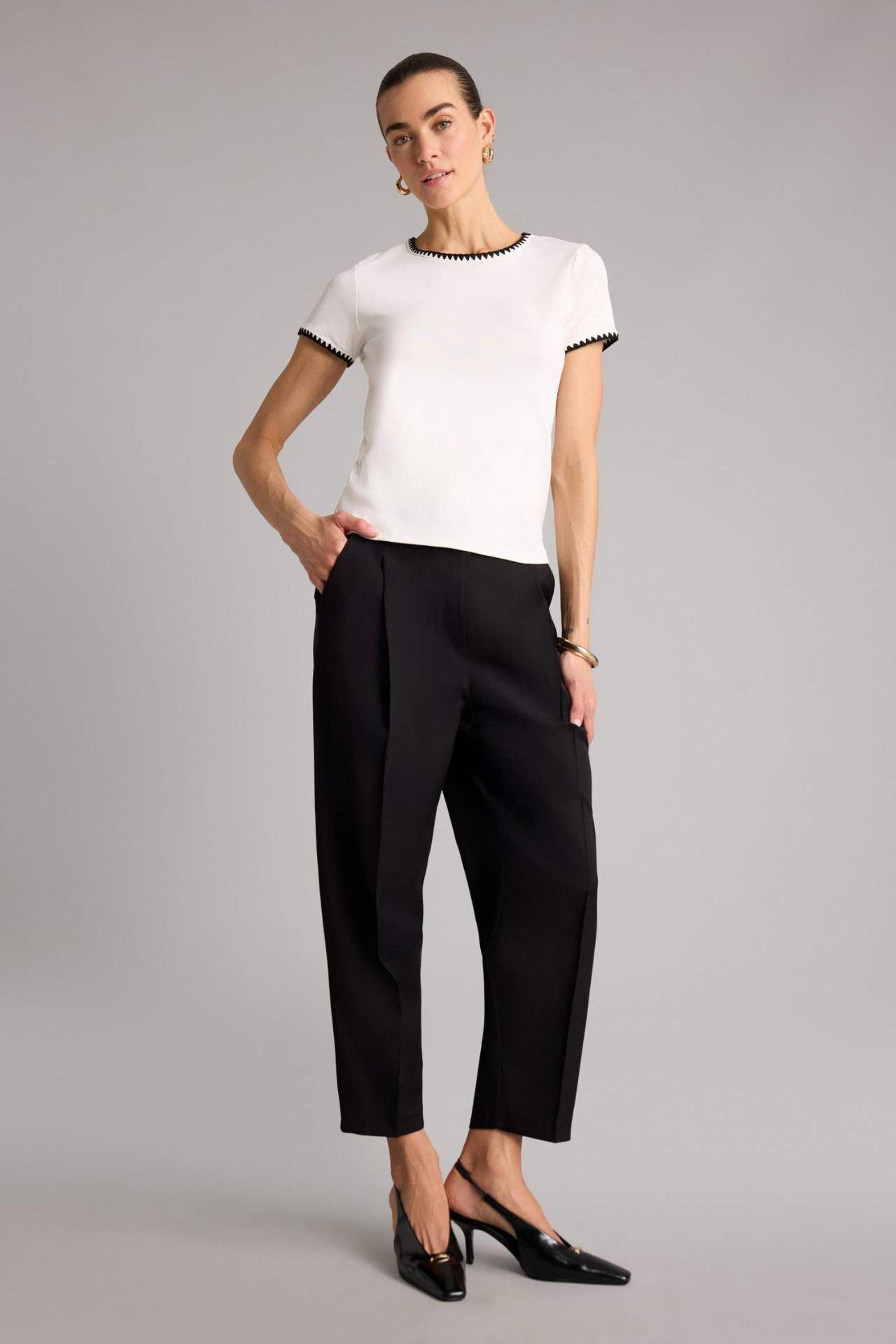 Yetişkin kadınlar için ideal olan bu moda dokuma pantolon, şık ve rahat bir seçenektir. Normal bel detayı ve düz paça tasarımı ile hem günlük kullanıma hem de özel günlerde tercih edilebilir. Siyah rengi ve fermuarlı kapama detayı ile şıklığına şıklık katan bu pantolon, yaz mevsiminde gardırobunuzun vazgeçilmezi olacak. Viskoz 92%,Poliester 8% Manken Bedeni: Göğüs: 89 Boy: 1,78 Basen: 92 Bel: 63