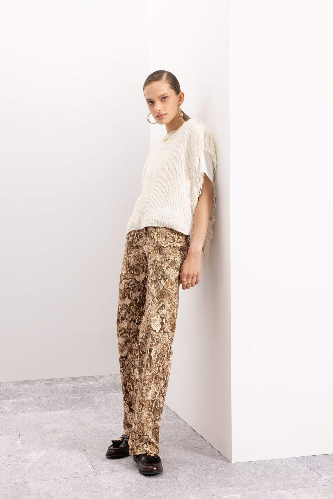 DeFacto Straight Fit Leopar Desenli Yüksek Bel Uzun Gabardin Pantolon D1229AX24AUBG307