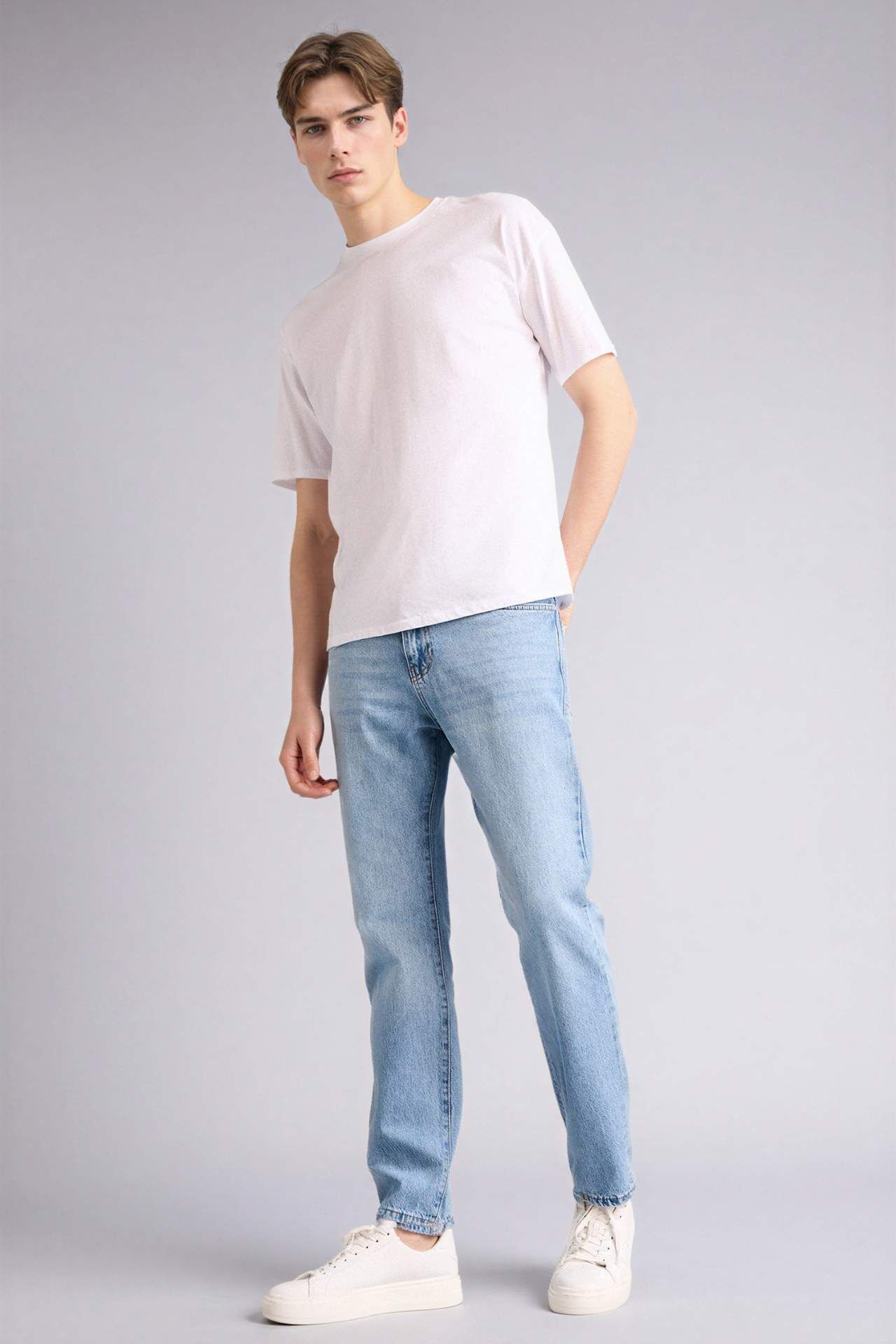 Straight Fit Pantolon, düz paça kesimiyle klasik ve zamansız bir görünüm sunar. Rahat kalıbı gün boyu konfor sağlarken, sade tasarımı günlük ve casual kombinlere kolayca uyum sağlar. Çok yönlü kullanıma uygun bir tercihtir. Pamuk 100% Manken Bedeni: Göğüs: 97 Boy: 1,87 Basen: 93 Bel: 95