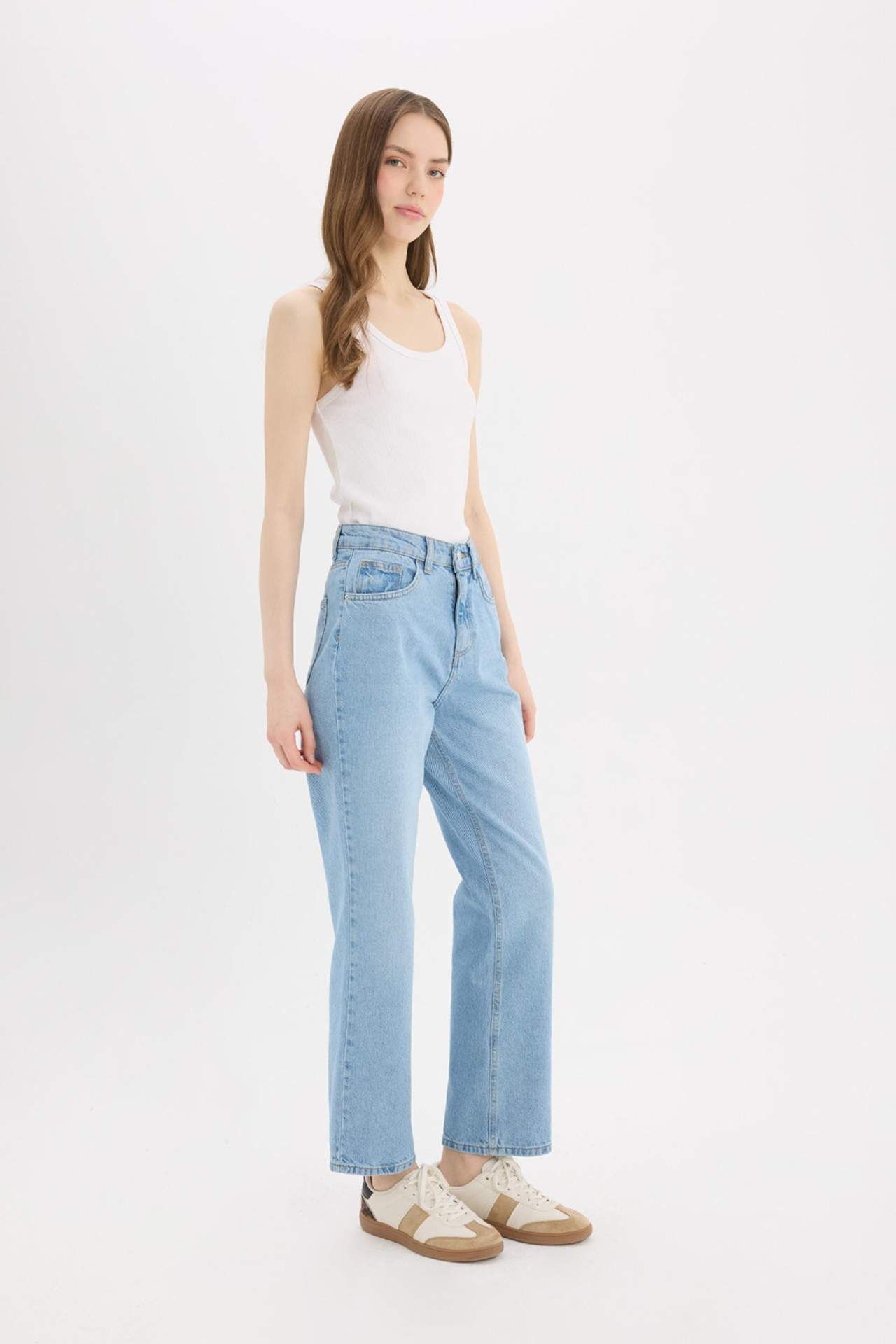 DeFacto Straight Fit Yüksek Bel Bilek Boy Jean Yıkamalı Pantolon E3191AX25SPNM39