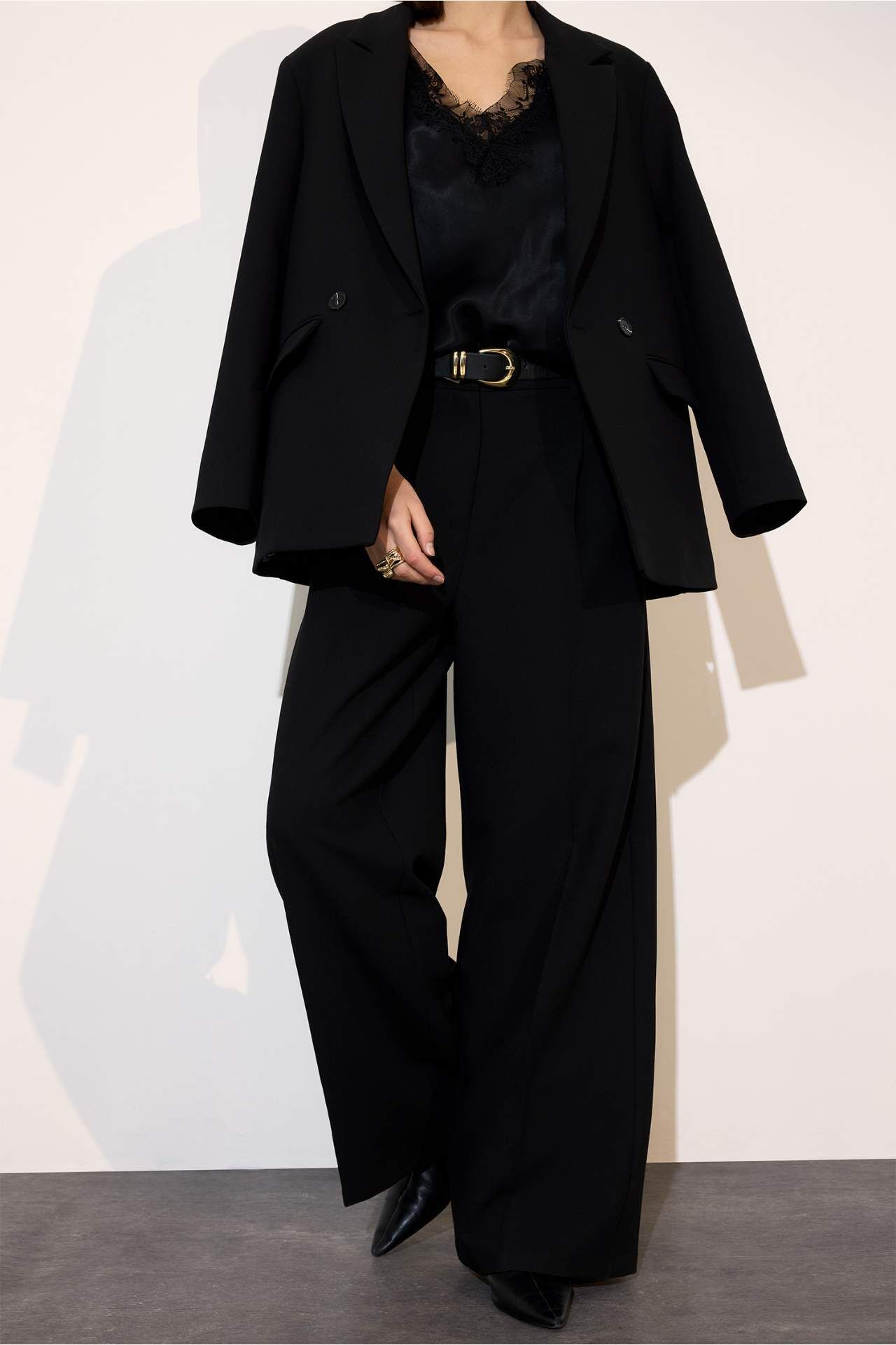 Straight fit yüksek bel düz paça pantolon, rahat kesimi ve yüksek bel tasarımıyla şık bir siluet sunar. Dayanıklı ve yumuşak kumaşı sayesinde gün boyu konfor sağlar ve her kombine kolayca uyum gösterir. Elastan 6%,Viskoz 22%,Poliester 72% Manken Bedeni: Göğüs: 89 Boy: 1,78 Basen: 92 Bel: 63